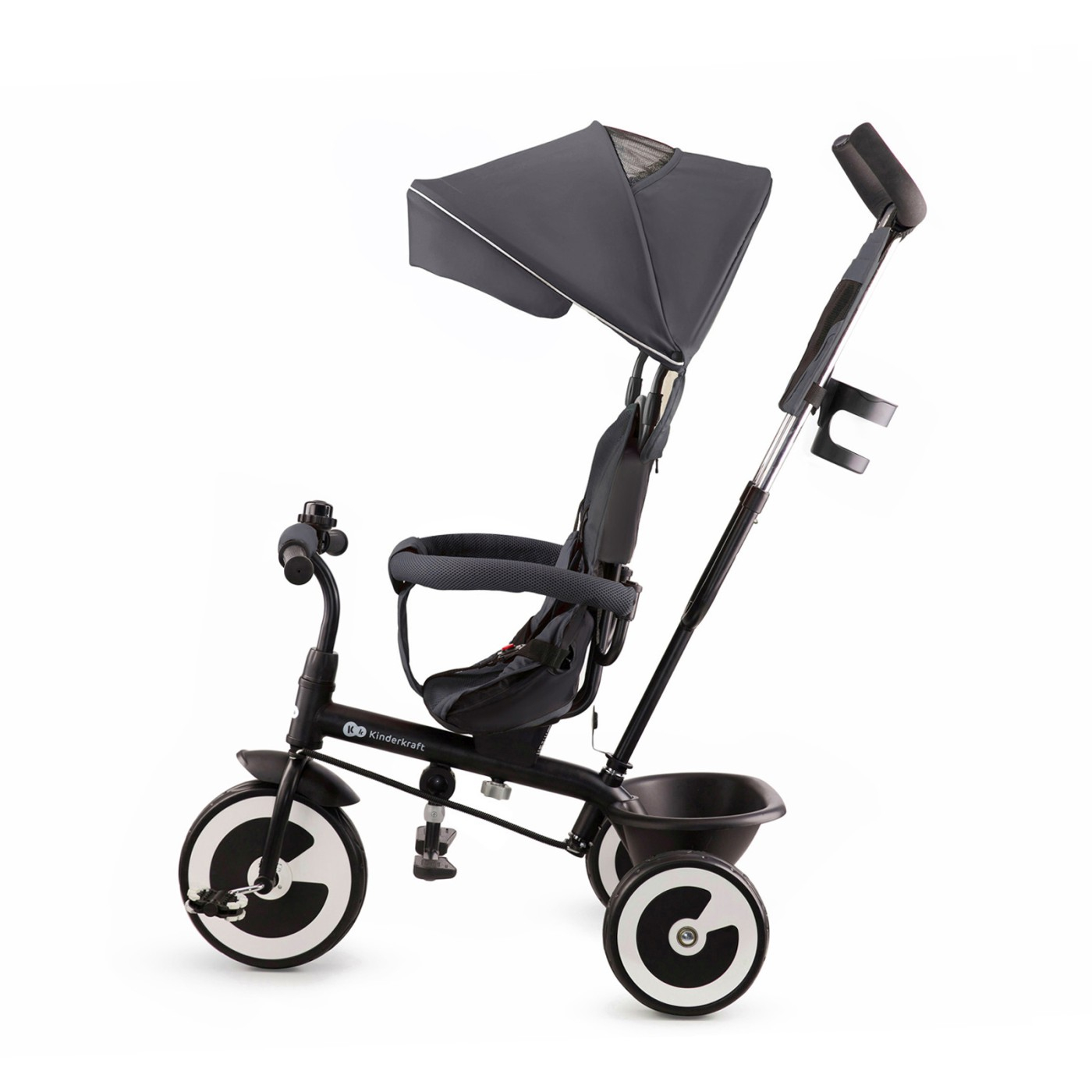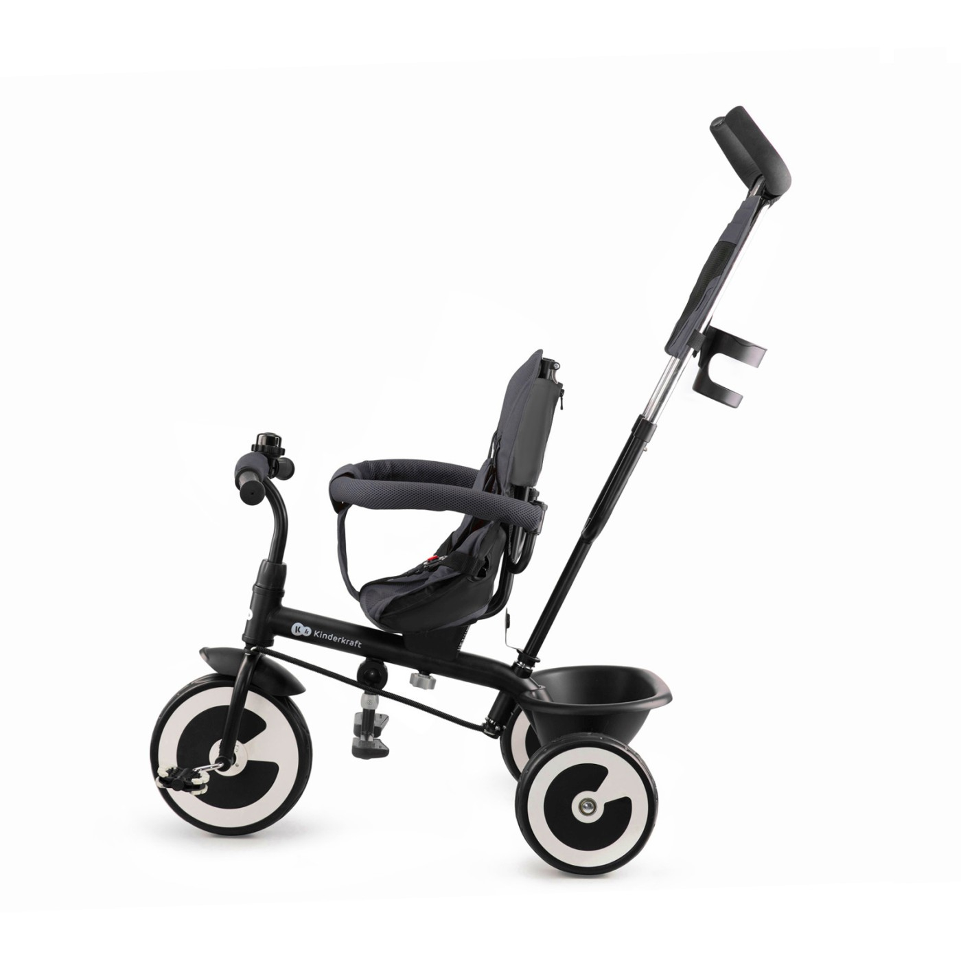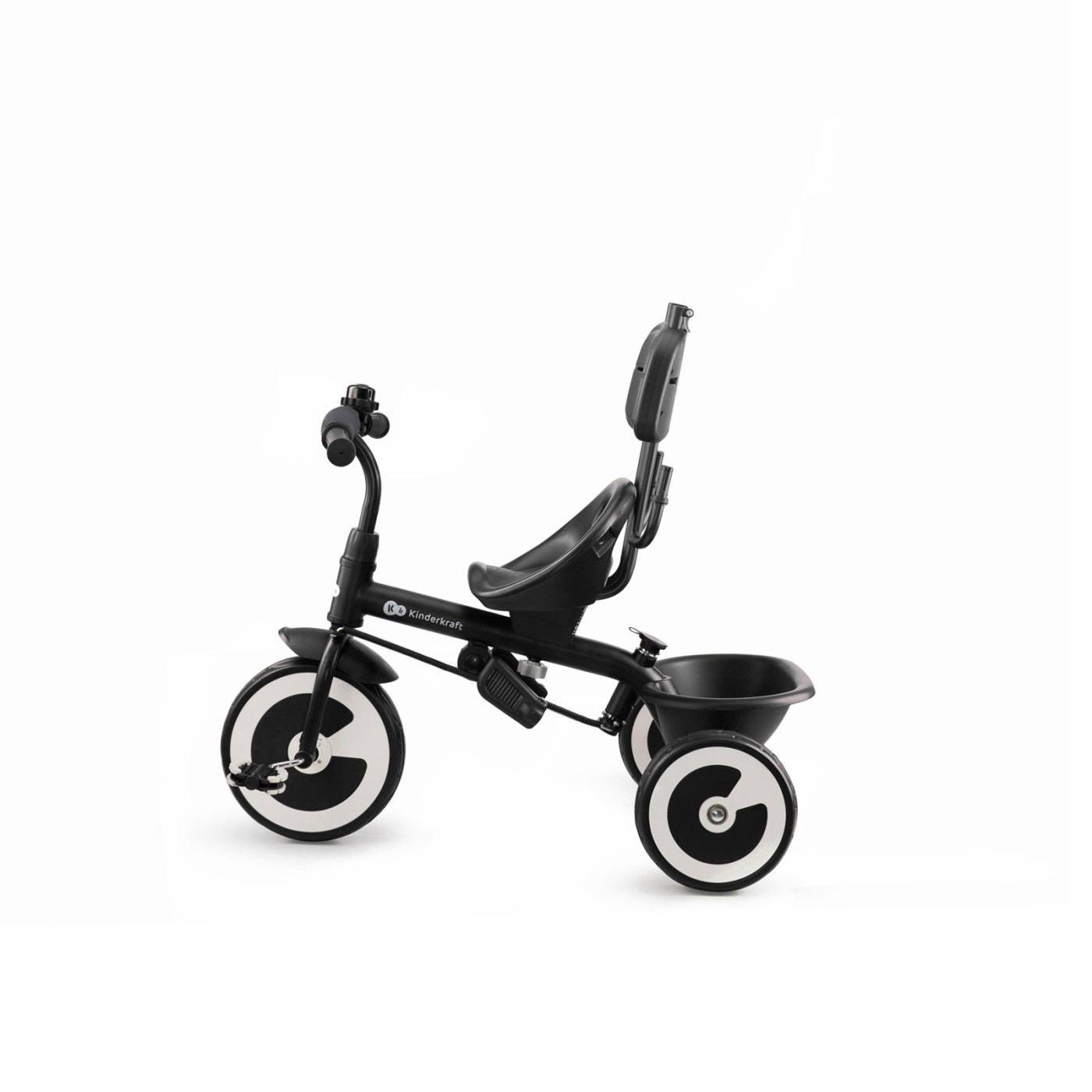 Tricicleta Kinderkraft ASTON, MALACHITE GREY Tricicleta ASTON MALACHITE GREY este destinata copiilor cu varsta cuprinsa intre 9 luni si 5 ani. Datorita existentei mai multor configuratii posibile, produsul poate fi usor adaptat la varsta si inaltimea copilului. Este prevazut cu un mecanism de directie ce uneste ghidonul parintelui cu ghidonul copilului si care permite ca, in caz de nevoie, parintele sa preia controlul asupra directiei in care merge tricicleta. Datorita suportului pliabil pentru picioare si posibilitatii de a monta sezutul cu fata sau cu spatele la directia de mers, ofera o minunata diversitate plimbarilor. Siguranta: Curele cu prindere in 5 puncte, cu protectie pe umeri si inca o curea intre picioare care asigura copilul impotriva caderii. Bariera de siguranta, un element suplimentar de siguranta, cu posibilitatea de demontare completa, facand, astfel, usoara urcarea pe tricicleta pentru copiii mai mari. Frane pe rotile din spate, care cresc siguranta in timpul stationarii si in timp ce copilul urca sau coboara de pe tricicleta. Mecanism de directie ce uneste ghidonul parintelui cu ghidonul copilului, care permite ca, in caz de nevoie, parintele sa preia controlul asupra directiei in care merge tricicleta. Produs testat si aprobat in conformitate cu standardul european de siguranta EN 71-1. Confort: Copertina mare, pliabila, cu rol de protectie impotriva vantului si soarelui. Prevazuta cu o fereastra suplimentara prin care parintele are posibilitatea de a vedea in permanenta copilul. Doua nivele la care se poate regla distanta de la sezut pana la pedale, datorita carora se poate alege pozitia cea mai comoda a copilului fata de ghidon. Reglarea inaltimii ghidonului parintelui, in functie de inaltimea parintelui. Asigura usurinta si confortul la condus. Ghidonul este acoperit cu spuma EVA. Functional: Tricicleta este multifunctionala – poate fi folosita si de copiii mai mari (se pot demonta bariera de siguranta, copertina si ghidonul parintelui). Roti mari, pline, ce nu se sparg, din spuma EVA cu fiabilitate sporita, datorita carora nu trebuie sa va faceti griji ca rotile ar putea pati ceva in timpul plimbarii. Functia de roata libera, care face posibil pedalatul liber pentru copil, indiferent de persoana care impinge tricicleta. Suport pentru picioare pliabil si posibilitatea de montare a sezutului cu fata sau cu spatele la directia de mers. Accesorii incluse in set Geanta practica pentru maruntisuri, montata pe manerul ghidonului parintelui Suport pentru paharul sau sticla cu bautura preferata Cos pentru depozitarea lucrurilor necesare sau a jucariilor copilului, montat in spatele sezutului Sonerie pe ghidonul copilului Executie Dimensiunile produsului: lungime: 92 cm latime: 50cm inaltime: 115cm Greutate: 9,5 kg