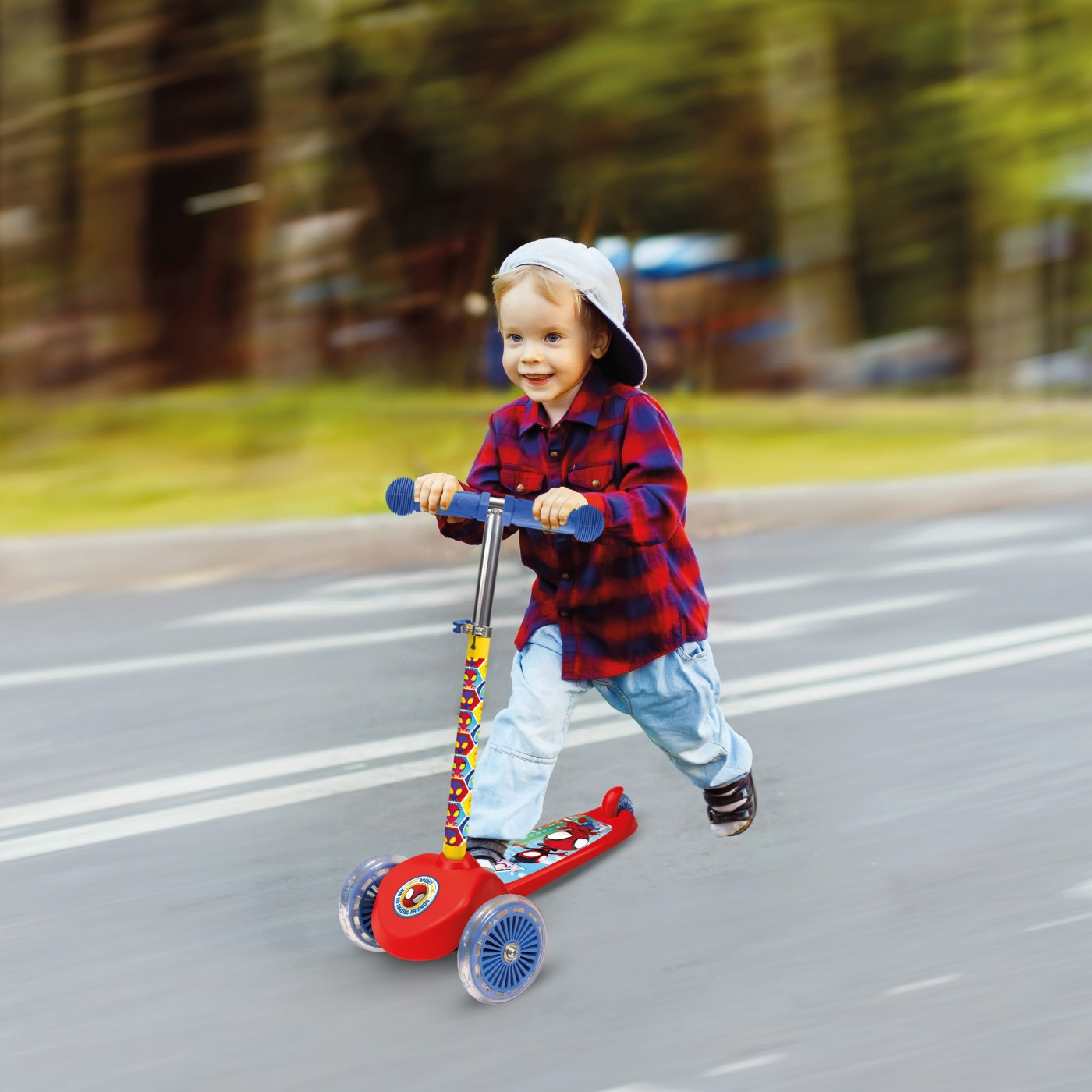 Scooter Plus Spidey si prietenii sai uimitori cu 3 roti pentru ore intregi de distractie cu eroul tau preferat! Urca-te pe trotineta si fa plimbari nenumarate! Trotineta contine o baza antiderapanta si o frana pentru siguranta deplina. Asamblarea se face dintr-o singura miscare. Dispune de o inaltime reglabila a ghidonului. Este destinata copiilor de peste 3 ani si o greutate corporala de maximum 50 kg.