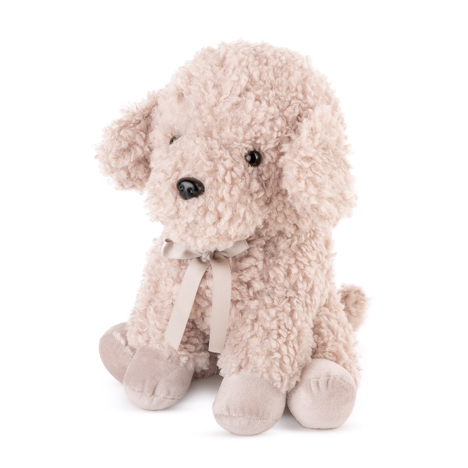 Câinele Pudel gri de 32 cm aduce un strop de eleganță și căldură în orice casă, fiind jucăria perfectă pentru îmbrățișări și momente de tandrețe.