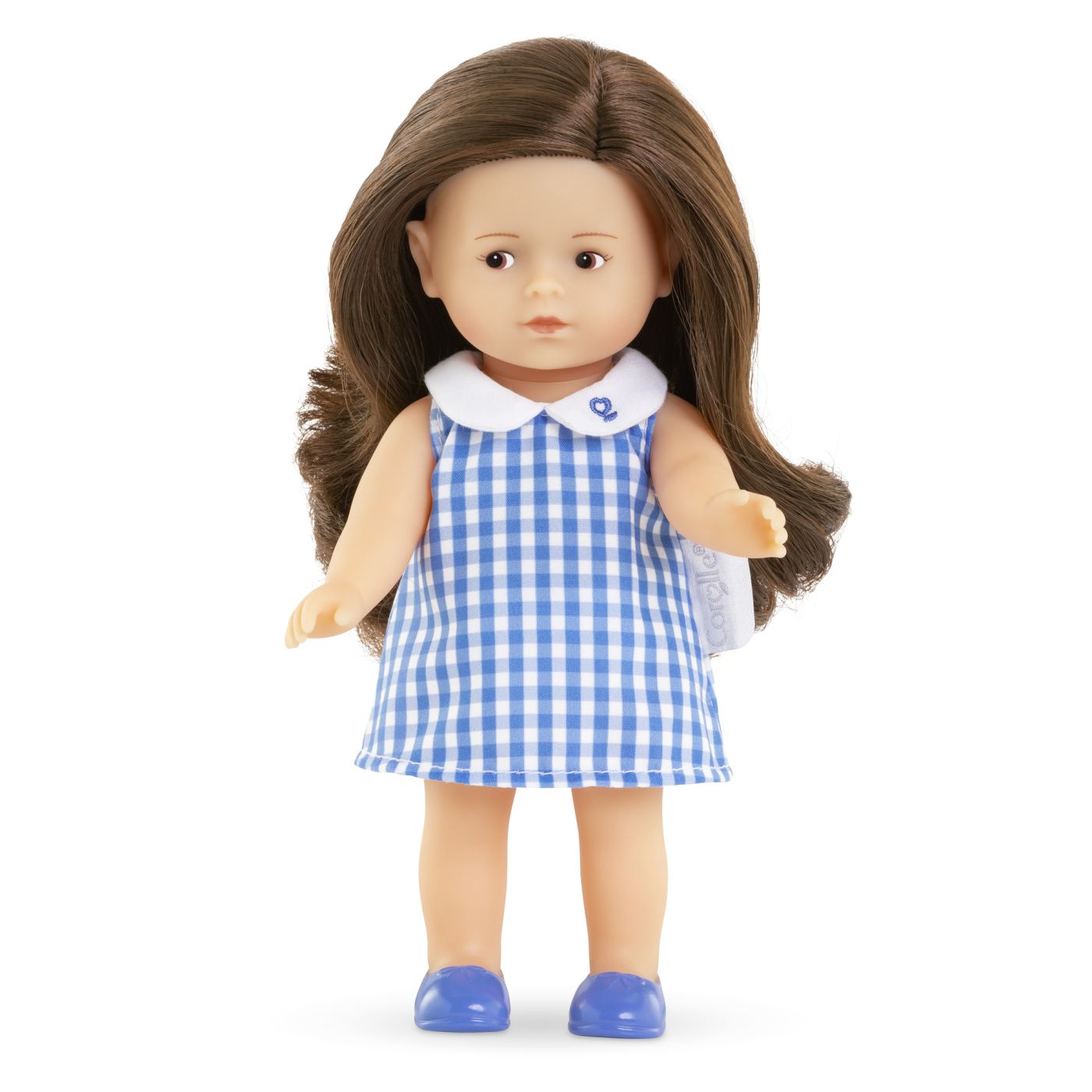 Mini Corolline Romy este o papusa mica, cu pielea deschisa la culoare, de 20 cm, „gata de oferit cadou”. Are un corp moale la atingere, complet din vinil, cu un parfum delicat de vanilie. Ochii ei caprui sunt pictati pe fata, iar parul lung, matasos si saten este ideal pentru coafare usoara. Vine imbracata intr-o rochie in carouri si o pereche de pantofi mulati asortati.