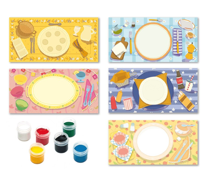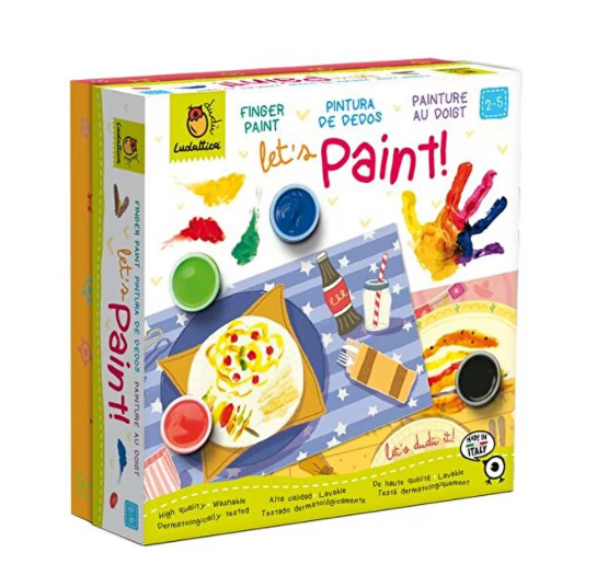 Setul Creeaza cu mine Hai sa pictam – Pictura cu degetele Ludattica este ideal pentru copiii între 2 și 5 ani care adoră să se exprime prin culoare și joacă. Cutia include 12 foi mari ilustrate (42x21 cm), cu decoruri de masă gata să fie completate cu „preparate delicioase” pictate de cei mici. Cu ajutorul celor 6 vopsele de înaltă calitate, lavabile și testate dermatologic, fiecare activitate devine o aventură sigură și plină de imaginație.