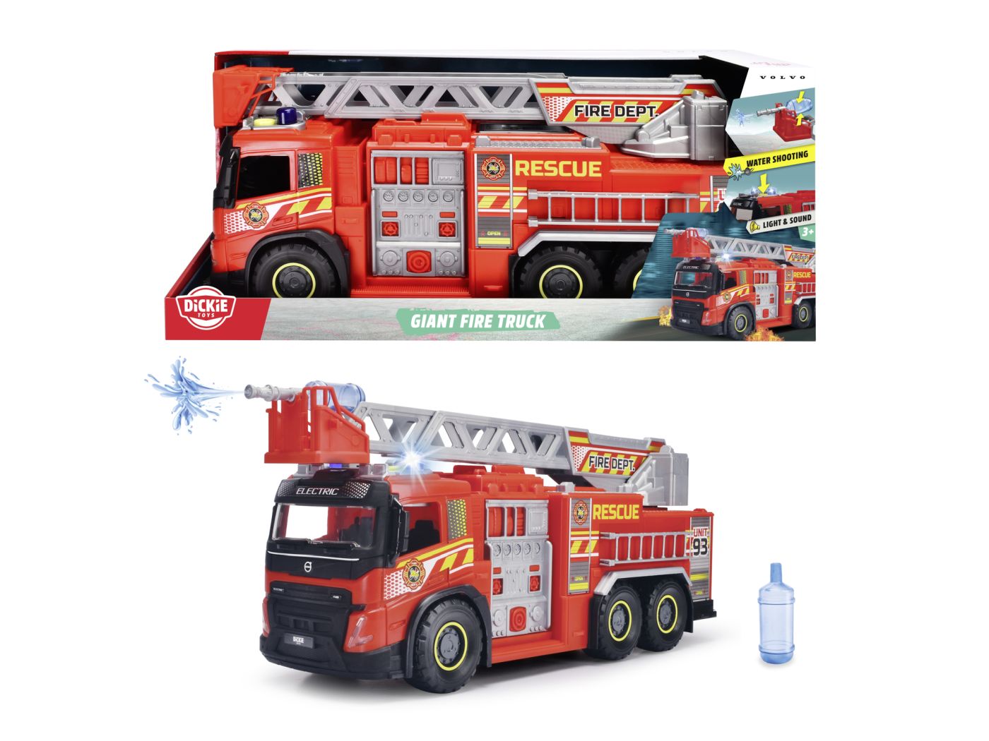 Masina de pompieri extra-mare cu pulverizator de apa si scara, masina de pompieri pentru copii cu varsta de la 3 ani in sus, cu lumini si sunete, include baterii. Aceasta masina de pompieri de jucarie rosu aprins pentru copii cu varsta de la 3 ani in sus masoara o lungime impresionanta de 57 cm. Si cand scara rotativa este extinsa, misiunea de stingere a incendiilor sau de salvare incepe cu adevarat! Cu ajutorul celor 2 sticle de rezervor de apa si a tunului cu apa de pe masina de pompieri, copiii pot recrea toate aventurile de stingere a incendiilor si pot pulveriza apa reala.
