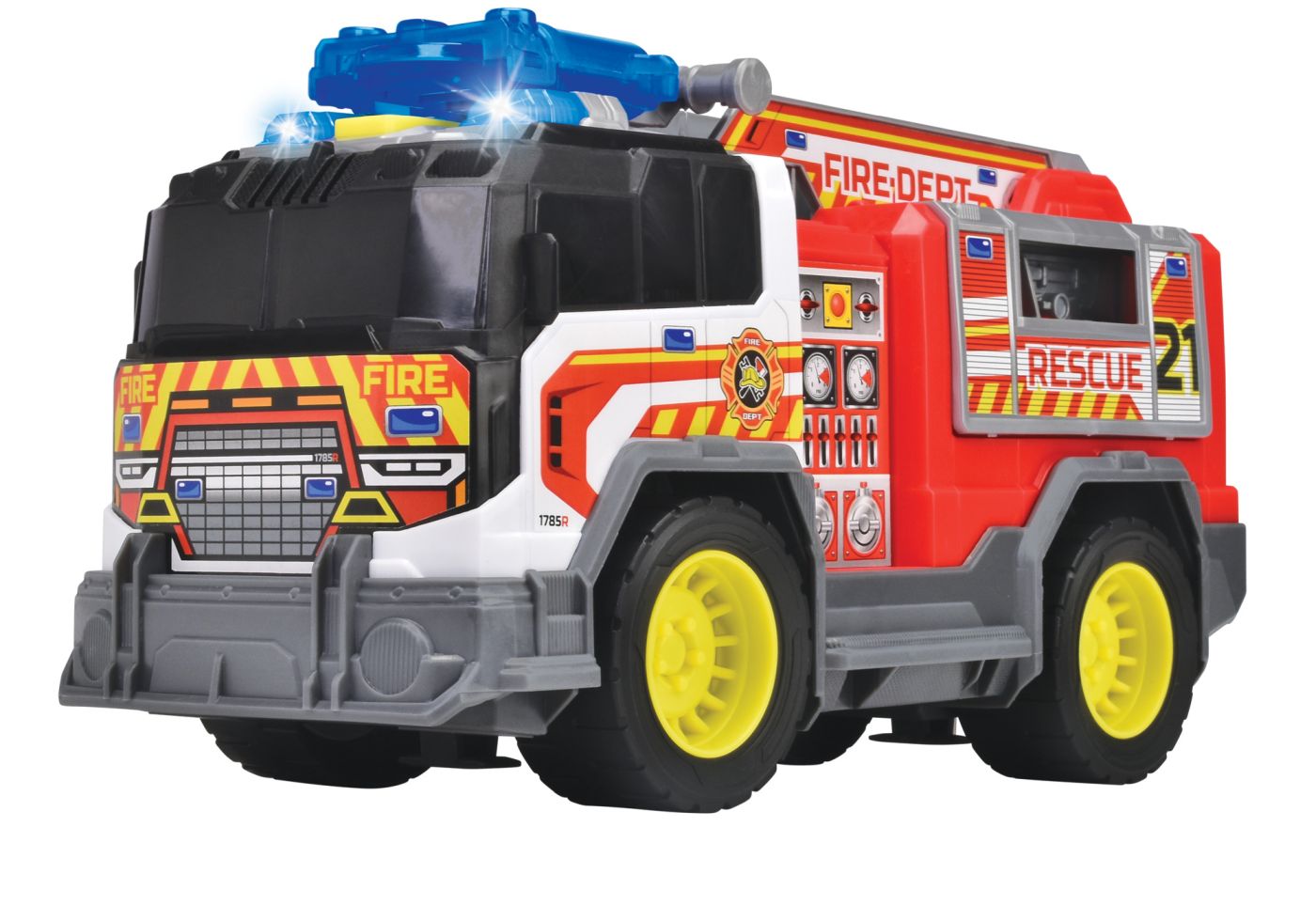 Unitate de salvare a incendiilor (30 cm) - masina de pompieri mare cu functie de tragere si scara, cu sunet si lumina. Scara masinii de jucarie vine cu un tragator de discuri, pe care copiii il folosesc pentru a trage cele 2 discuri incluse - pentru a asorta lucrurile reale cu motive de apa si drone. Partile mobile, cum ar fi scara pliabila si compartimentul lateral care se deschide, simuleaza operatiuni reale de salvare si stimuleaza imaginatia si creativitatea fetelor si baietilor.