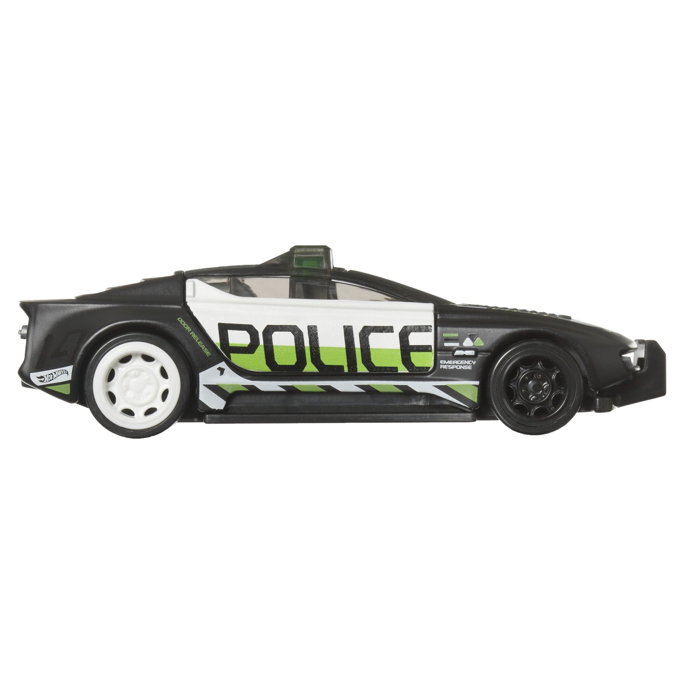 Aceste vehicule din metal Hot Wheels sunt la scara 1:43, cu decor autentic. Fiecare include o caracteristica interactiva precum Rolomatics, care evidentiaza miscarile motorului, sau usile, capotele sau portbagajul care se deschid. Cu detalii atat de grozave, posibilitatile de joaca sunt nesfarsite pentru copii, iar colectionarii le vor dori pe toate. Fiecare se vinde separat, in functie de disponibilitate. Culorile si decoratiunile pot varia. Acest pachet contine masinuta Police Alpha Pursuit.