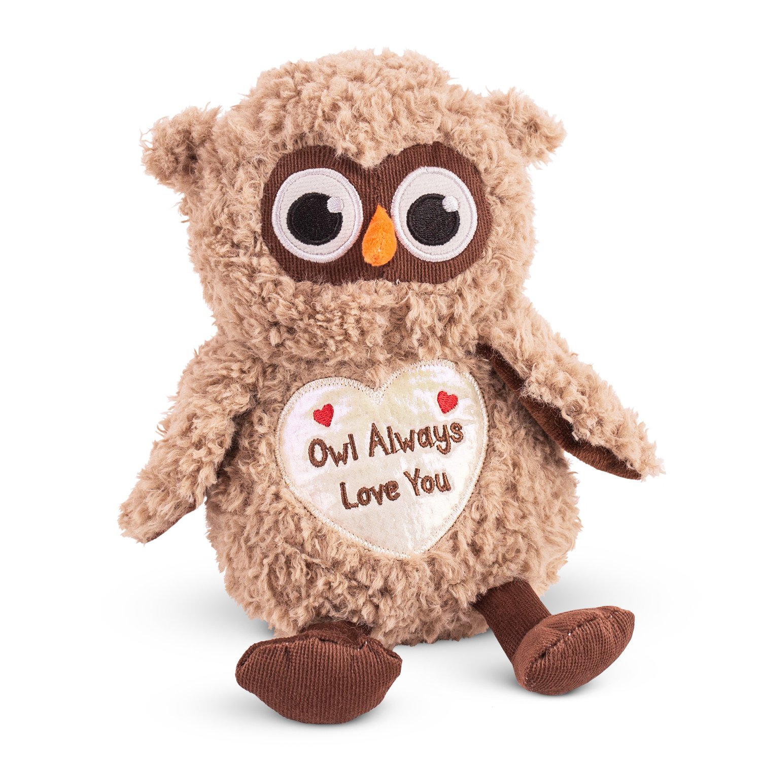 Bufnița maro de pluș de 22 cm este o jucărie adorabilă, moale și pufoasă, perfectă pentru a aduce zâmbete. Cu ochi mari și expresivi și o inimă brodată cu mesajul „Owl always love you”, transmite afecțiune și căldură. Ideală pentru cadouri pline de semnificație.
