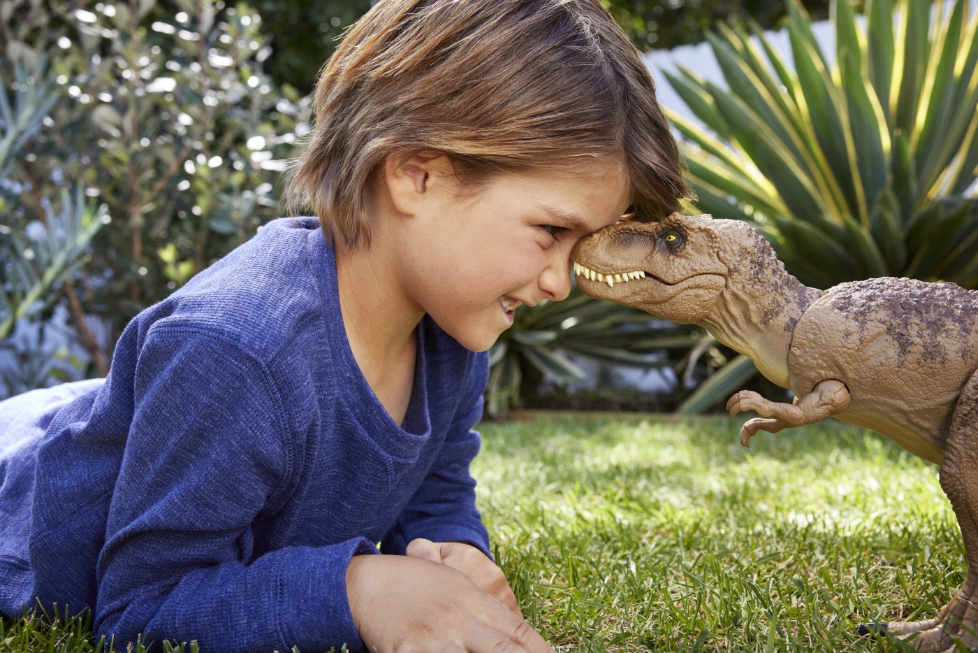 Pregateste-te pentru senzatii tari si aventura cu acest dinozaur Tyrannosaurus Rex All-Out Attack inspirat din Jurassic World Chaos Theory. Apasa un buton pentru miscari dramatice ale capului sau al maxilarului, iar celalalt pentru a activa miscarea capului si a cozii. Miscarile de atac functioneaza cu sau fara echipamentul de urmarire! Acest dinozaur este esential pentru actiunea din Jurassic World, iar aceasta figurina are sculptura inspirata din film, articulatii mobile, culori autentice si textura realista. Indrazneste sa vezi cat de REAL poate deveni jocul cu dinozauri! Aduceti aceasta creatura terifianta la viata cu jocul digital extins folosind realitatea augmentata! Trebuie doar sa scanezi codul ADN ascuns cu orice dispozitiv inteligent pentru a debloca experientele AR din aplicatia gratuita Jurassic World Facts. Dispozitivul inteligent nu este inclus.
