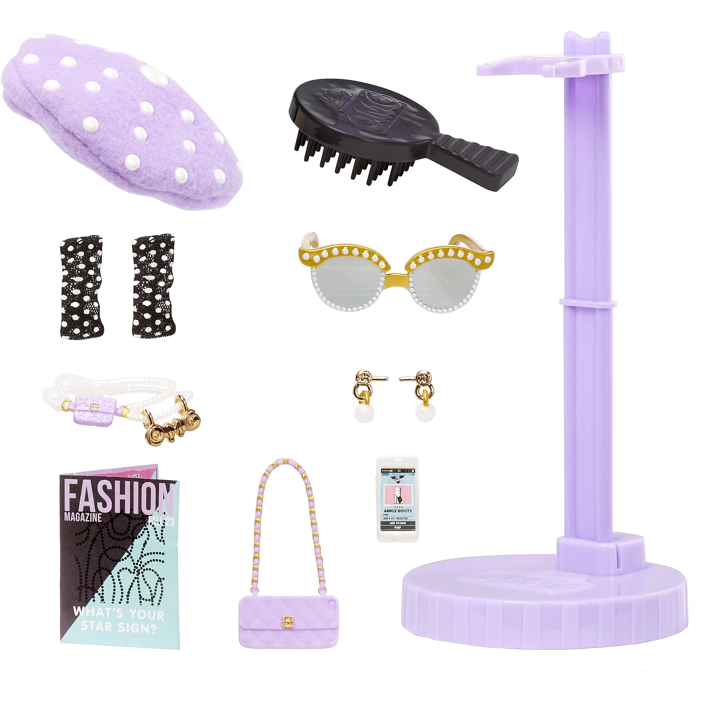 Descopera papusa L.O.L. Surprise! OMG - Pose! Pose este mereu gata de o sesiune de shopping, fiind experta in descoperirea celor mai noi tendinte! Cand prietenele ei se simt pierdute printre rafturi, Pose este cea pe care o suna, deoarece adora sa impartaseasca cele mai recente stiluri cu BFF-urile ei. Papusa Pose are trasaturi uimitoare, par superb, o tinuta glamour si este articulata pentru a-ti permite sa creezi nenumarate scenarii de joaca. Setul include: Tinuta fabuloasa si accesorii care reflecta stilul rafinat al lui Pose. Bluza chic cu funda, poseta in forma de carcasa de telefon, bereta mov si multe altele. Pantofi, ochelari, perie de par si un stand pentru papusa. Colectioneaza-le pe toate si exploreaza o lume a modei, surprizelor si prieteniei!