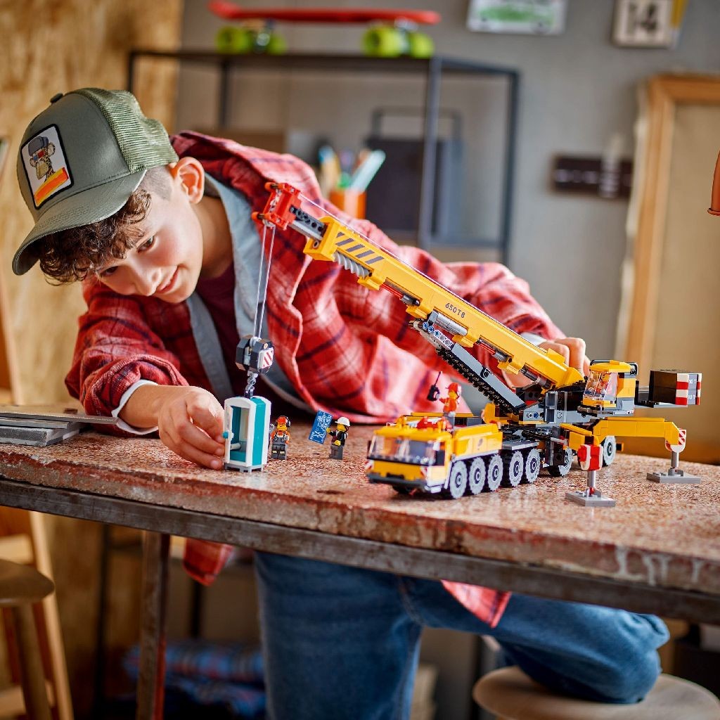 Aprinde fascinatia copiilor de 9 ani si mai mari pentru vehicule de constructii cool cu jucaria LEGO City Macara mobila galbena de constructii (60409). Acest model impresionant contine o multime de functii realiste. Copiii pot extinde picioarele de sprijin, pot pivota cabina, pot intinde si roti bratul la 360+u00b0 si pot actiona troliul. Adauga cele 4 minifigurine muncitori pentru joaca pe roluri si povesti fanteziste. Acest set cu vehicul de constructie LEGO include un detaliat ghid de constructie tiparit si instructiuni 3D in aplicatia LEGO Builder, un partener de constructie digital cu instrumente intuitive de apropiere si rotire care permit copiilor sa vizualizeze modelele din toate unghiurile in timp ce le construiesc. Seturile LEGO City reprezinta cadouri creative pentru copii si contin vehicule cool, structuri realiste si personaje distractive care ofera inspiratie nelimitata. Copiii pot combina acest set cu macara LEGO City cu altele (vandute separat) din gama LEGO City pentru a extinde posibilitatile de joaca.