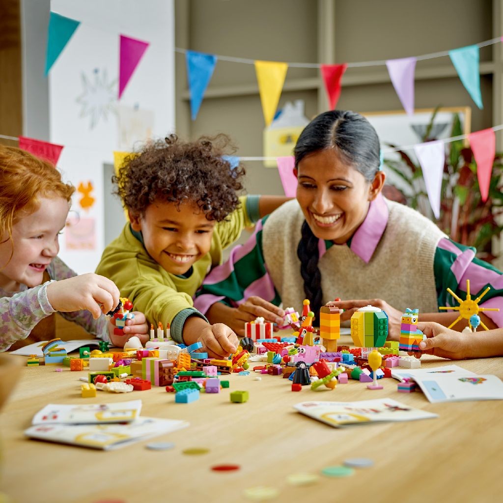 Aduna prietenii si familia impreuna cu activitatile de construit distractive din setul LEGO Classic Cutie creativa de petrecere (11029). Acest mix colorat de caramizi pentru varstele 5+ ofera o experienta grozava de joaca in grup, oricare ar fi ocazia. Împartaseste distractia creativa cu aceasta colectie colorata de caramizi pentru construit. Piesele sunt grupate in 6 pungi, fiecare continand caramizi si instructiuni de construire printate pentru a crea 2 modele usor de asamblat. Modelele includ un ursulet, clovn, unicorn, piñata, curcubeu, tort, popcorn, baloane si mici cadouri. Este o activitate grozava de grup pentru orice ocazie - si cand evenimentul ia sfarsit, constructia creativa poate continua! O versiune digitala a instructiunilor de construit se regaseste in aplicatia LEGO Builder. Jucariile LEGO Classic pentru varstele 5+ echipeaza manutele copiilor cu idei si inspiratie si ofera adultilor o oportunitate de a le fi alaturi cand se distreaza construind si isi dezvolta abilitatile. Modele distractive de construit impreuna - Familia si prietenii pot participa la provocarile de construit cu LEGO Classic Cutie creativa de petrecere (11029), un set colorat si creativ conceput pentru copii de varstele 5+. Set plin de activitati - 900 de piese vibrant colorate sunt grupate in 6 pungi, fiecare continand caramizi si instructiuni pentru a construi 2 modele usor de asamblat. Jocuri de petrecere distractive - Participantii pot forma echipe pentru intreceri de construit pentru a crea un ursulet, clovn, unicorn, piñata, curcubeu, tort, popcorn, baloane si mai multe. Distractia nu se opreste - Cu 12 modele si nesfarsite posibilitati de construit la liber, acest set creativ este un cadou de zi de nastere, Craciun sau orice ocazie care va continua sa distreze mult timp copiii de varstele 5+. Activitati extra incluse - Setul contine sugestii pentru posibilitati aditionale de joaca. Gasiti si mai multe variante disponibile online. Conceput pentru tineri constructori - Constructia este simpla si distractiva cu ghidul ilustrat si usor de urmarit. O versiune digitala a acestuia se regaseste si in aplicatia LEGO Builder. Caramizi care cladesc abilitati - Seturile LEGO Classic pun joaca nelimitata si exprimarea de sine creativa in mainile tinerilor constructori.