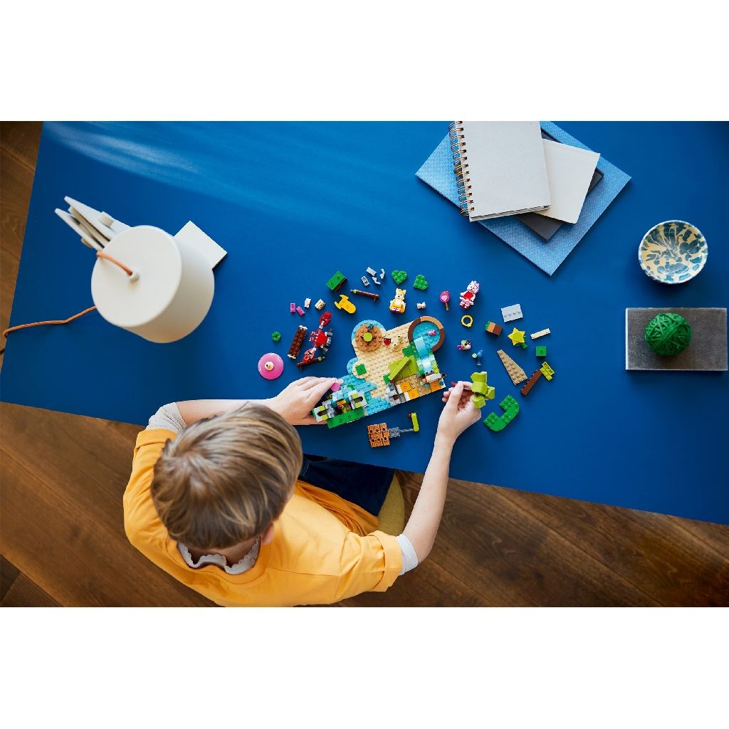 Copiii in varsta de 7+ ani care il adora pe Sonic sau vor sa aiba grija de animale se pot distra din plin cu acest set de jucarie LEGO® Sonic the Hedgehog™ Insula lui Amy cu animale (76992) pentru copiii de 7+ ani. Joaca devine creativa in timp ce copiii exploreaza insula si ii ajuta pe Amy si Tails sa-si ingrijeasca prietenii animale. Sunt o multime de lucruri de facut in timp ce personajele aluneca pe tobogan in piscina, construiesc castele de nisip sau se bucura de carusel. Copiii pot folosi podul rabatabil si trapa de la cascada pentru a-l infrange pe Badnik care incearca sa fure animalele. Este si o usa secreta care conduce spre bucatarie si zone de dormit unde copiii pot ingriji animalele care au fost salvate. Actiunea de viteza distractiva se combina cu creativitatea cu seturile LEGO Sonic the Hedgehog™. Fanii Cetei Albastre pot crea scene inspirate din aventurile Sonic preferate. Cand e momentul pentru a schimba ritmul, copiii se pot bucura de o joaca imaginativa ingrijind prietenii animale ai lui Sonic.