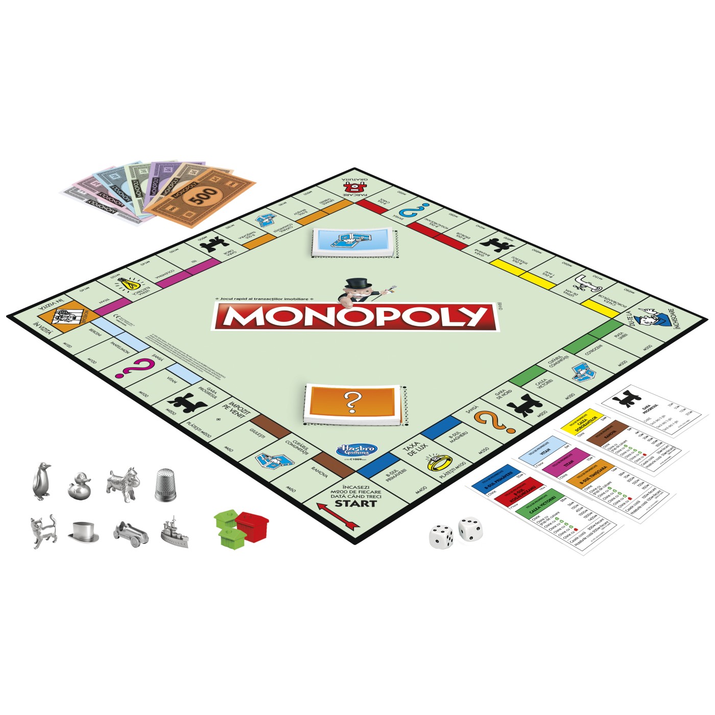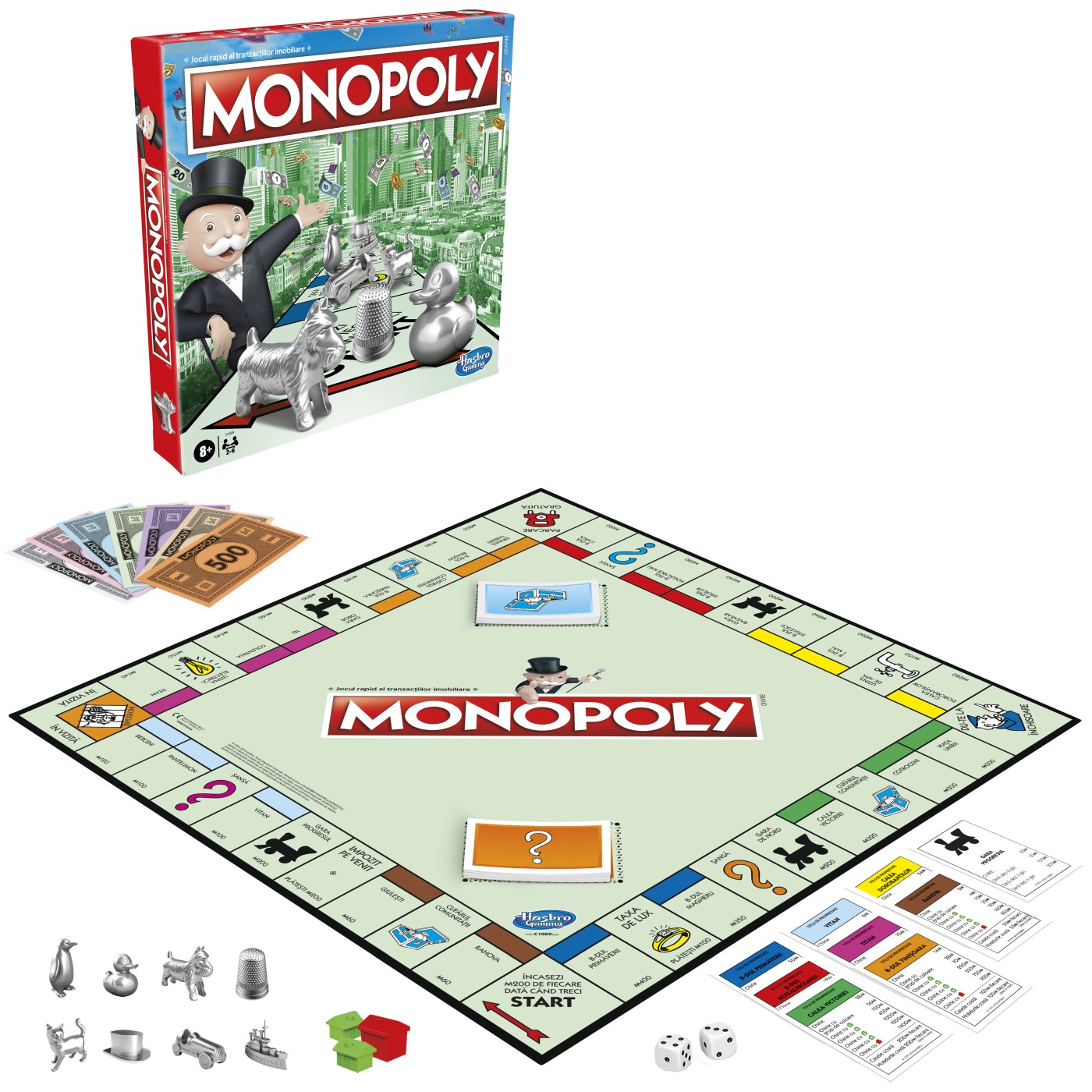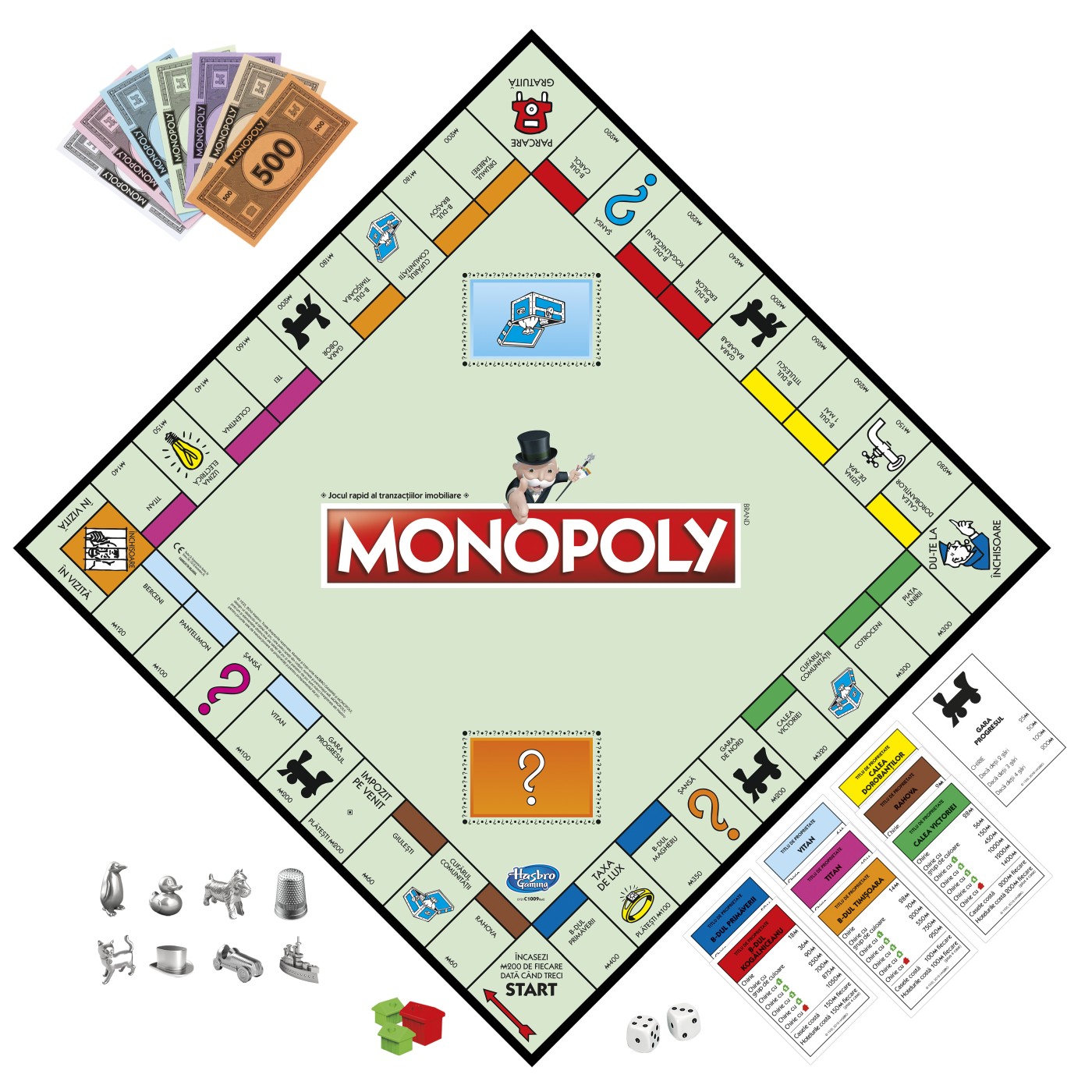 Monopoly- O noua colectie de pioni este un joc de societate care te invata, prin joc, cum sa iti administrezi banii. Descopera cel mai faimos joc de tranzactii imobiliare, in varianta clasica, cu strazile din Bucuresti si cu trei noi pioni: Ratusca, Pinguinul si Dinozaurul T-Rex. Alege-ti pionul preferat, misca-te pe tabla, vinde si cumpara proprietati si construieste case si hoteluri din mers. Scopul e sa faci tranzactii profitabile si sa te imbogatesti rapid - in curand vei detine totul! Jocul contine: 1 tabla de joc, 8 pioni, 28 cartonase - Titluri de proprietate, 16 cartonase - Sansa, 16 cartonase - Cufarul comunitatii, 32 Case, 12 hoteluri, 2 zaruri, pachet de bani, regulament de joc. Noua versiune te intampina cu noi pioni simpatici!