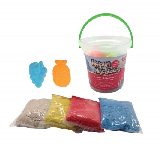 Nisipul modelabil Daco nisipuri mișcătoare, în cantitate de 400g, este alegerea ideală pentru activități creative și moment de joacă pline de imaginație. Setul include 4 culori diferite, câte 100g din fiecare culoare, oferind posibilitatea de a crea combinații variate și forme originale. Textura specială a nisipului modelabil permite modelarea ușoară și refolosirea repetată, fiind potrivită pentru dezvoltarea creativității și a îndemânării. Pachetul conține și 2 forme de model, care ajută la realizarea unor figurine interesante și distractive. Produsul este multicolor, face parte din categoria nisip colorat, este fabricat în România și este recomandat copiilor cu vârsta minimă de 3 ani.