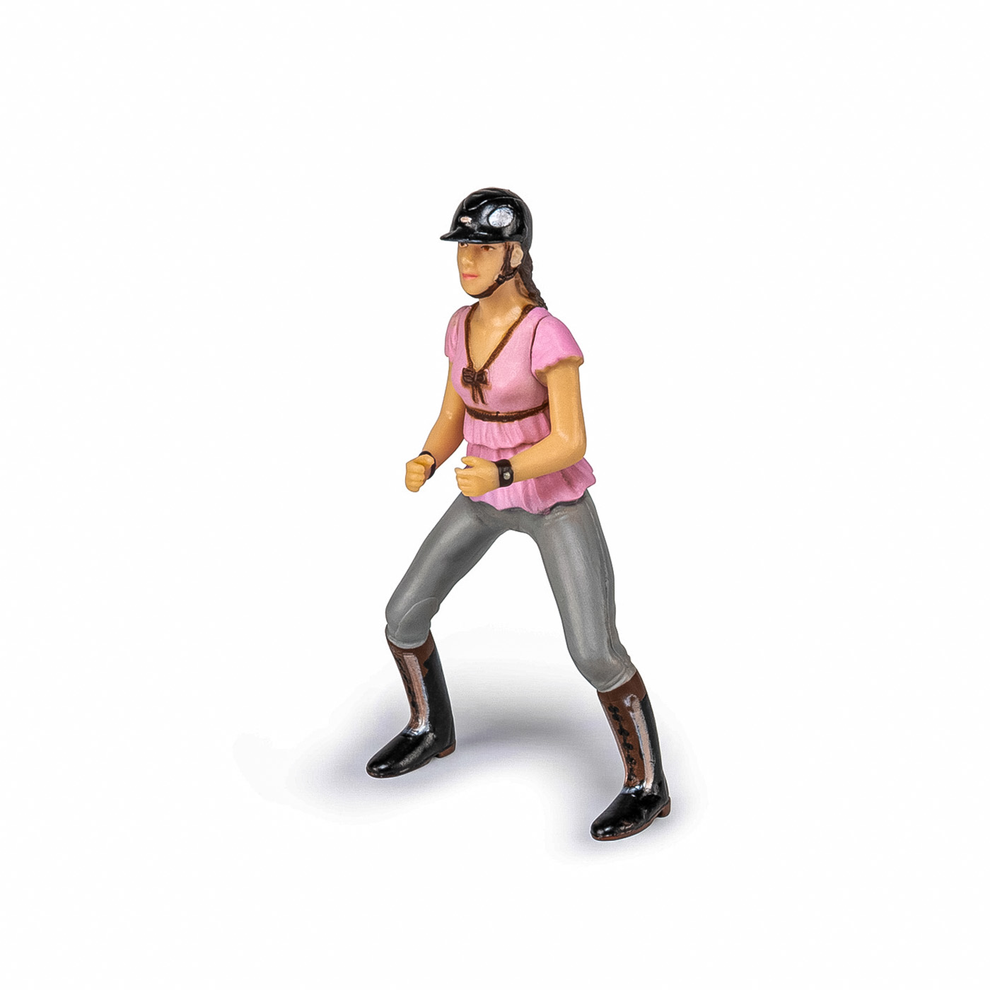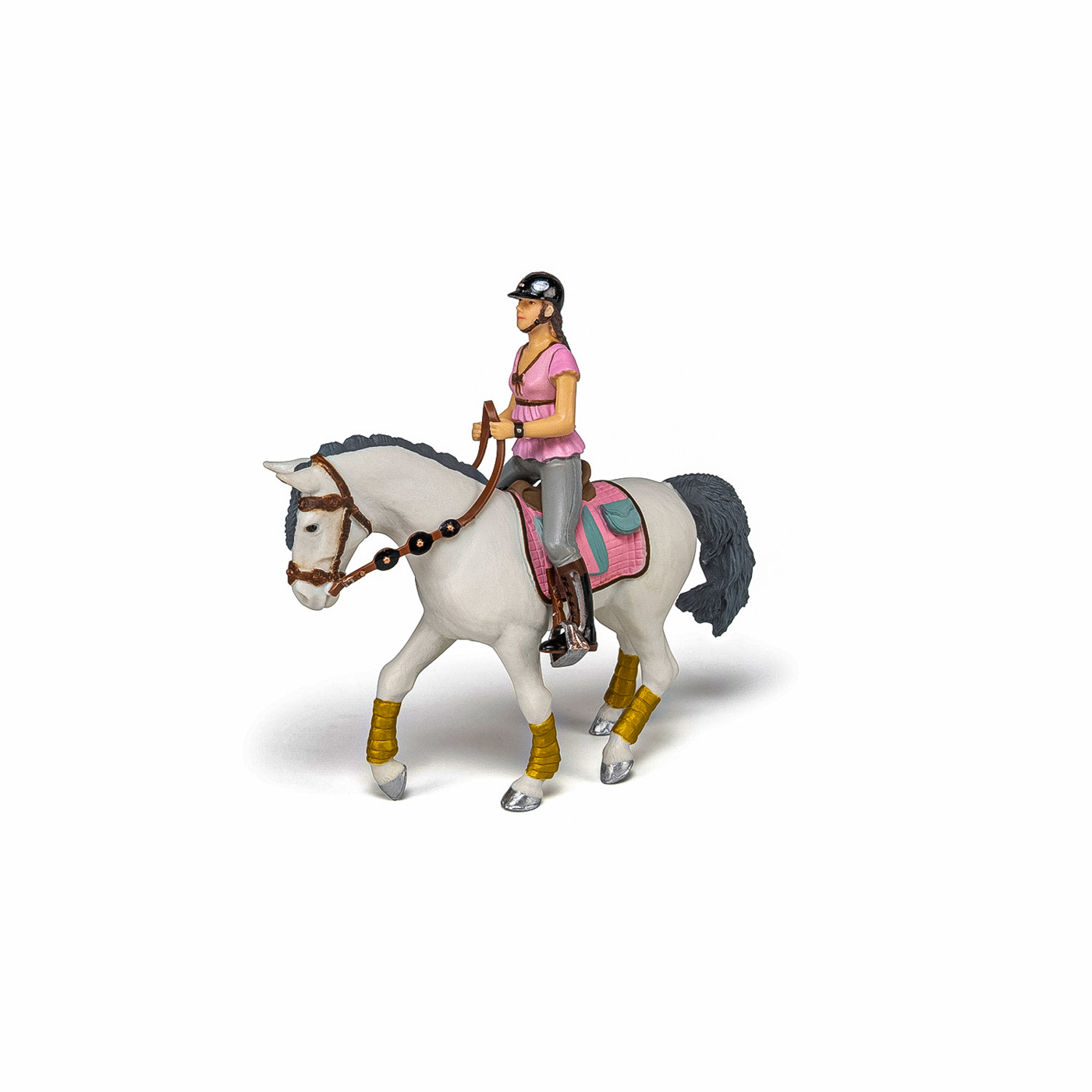Faceti o plimbare prin campuri cu ecvinele Papo, participati la concursuri de sarituri sau chiar la cursuri de dresaj. Fata de calarie la moda straluceste cu calul ei. Amandoi sunt potriviti si amandoi sunt pregatiti pentru cursa. Produsul are urmatoarele dimensiuni: 4.5 x 3 x 9cm si este recomandat copiilor cu varsta peste 3 ani. De mai bine de 20 de ani, Papo inoveaza constant si ii face pe copii din intreaga lume sa viseze cu o gama bogata de peste 600 de produse, reprezentand 12 lumi, animale si personaje. De la modelul original la serie, fiecare dintre figurinele Papo a fost conceputa si creata in Franta pentru a fi fabricata intr-o permanenta preocupare pentru calitate. Pictate manual, atentia la detalii este acum recunoscuta. Figurinele Papo se disting prin acuratete si realism, detaliile sunt de asa natura incat am putea crede ca se vor pune in miscare.