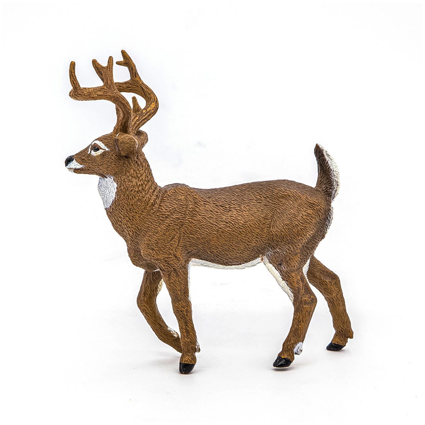 Vizitati cerbul cu coada alba maiestuoasa in inima padurilor, explorati savana alaturi de puternicul tigru de Sumatra sau urcati pe varfuri acoperite de zapada pentru a cauta leopardul de zapada. Cerbii cu coada alba sunt mamifere, raspandite predomimant pe teritoriul Americii de Nord si Centrale. Sunt intalnite in special in zone impadurite, putand sa se fereasca de pradatori prin coloritul lor neutru. Cerbii cu coada alba sunt animale sperioase, mereu alerte, acestea isi ridica cozile albe in aer in caz de pericol. Cerbii cu coada alba, sunt vanati pentru coarnele lor, acestea fiind expuse ca trofee valoroase. Produsul are urmatoarele dimensiuni: 10.4 x 4 x 10.9cm si este recomandat copiilor cu varsta peste 3 ani. De mai bine de 20 de ani, Papo inoveaza constant si ii face pe copii din intreaga lume sa viseze cu o gama bogata de peste 600 de produse, reprezentand 12 lumi, animale si personaje. De la modelul original la serie, fiecare dintre figurinele Papo a fost conceputa si creata in Franta pentru a fi fabricata intr-o permanenta preocupare pentru calitate. Pictate manual, atentia la detalii este acum recunoscuta. Figurinele Papo se disting prin acuratete si realism, detaliile sunt de asa natura incat am putea crede ca se vor pune in miscare.