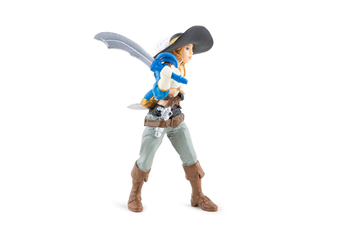 Navigati pe mari in cautarea comorilor pierdute. Figruina femeie Pirat. Produsul are urmatoarele dimensiuni: 4 x 6.5 x 10.5cm si este recomandat copiilor cu varsta peste 3 ani. De mai bine de 20 de ani, Papo inoveaza constant si ii face pe copii din intreaga lume sa viseze cu o gama bogata de peste 600 de produse, reprezentand 12 lumi, animale si personaje. De la modelul original la serie, fiecare dintre figurinele Papo a fost conceputa si creata in Franta pentru a fi fabricata intr-o permanenta preocupare pentru calitate. Pictate manual, atentia la detalii este acum recunoscuta. Figurinele Papo se disting prin acuratete si realism, detaliile sunt de asa natura incat am putea crede ca se vor pune in miscare.