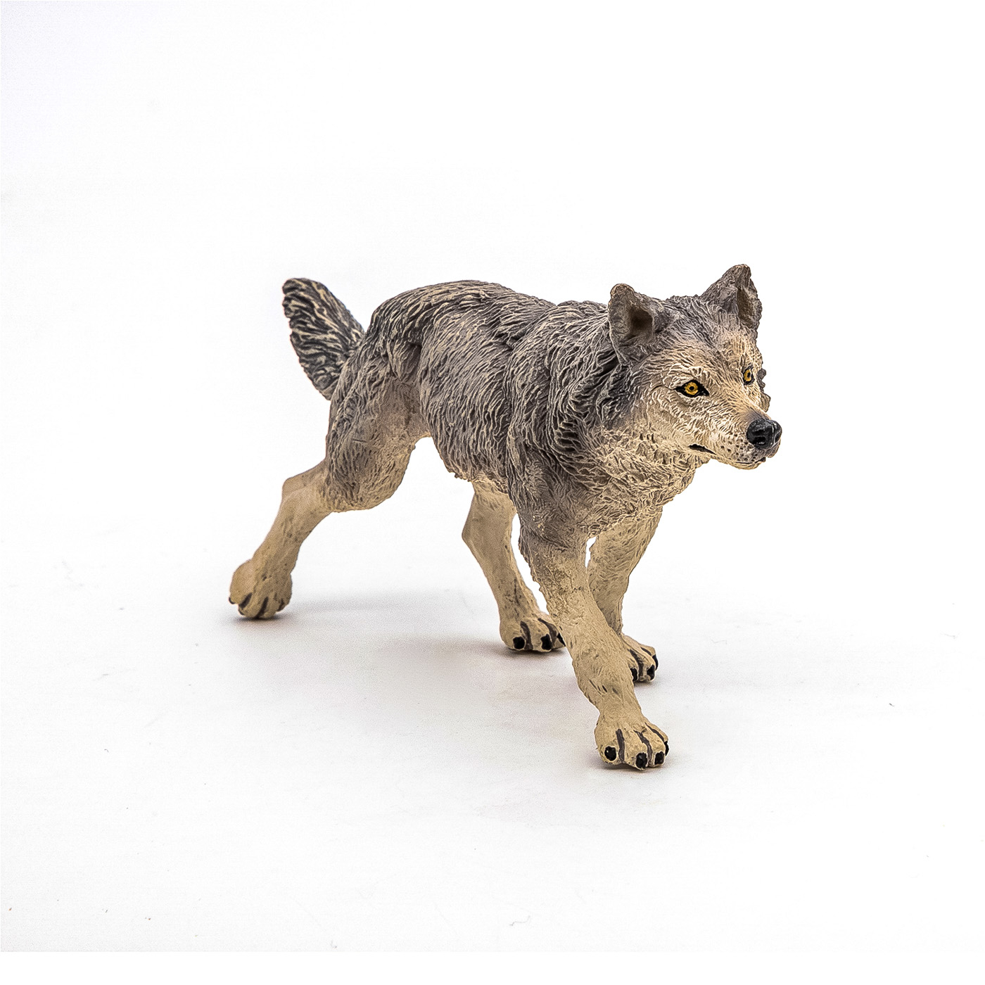 Vizitati cerbul cu coada alba maiestuoasa in inima padurilor, explorati savana alaturi de puternicul tigru de Sumatra sau urcati pe varfuri acoperite de zapada pentru a cauta leopardul de zapada. Lupul cenusiu nu este un animal solitar si trebuie sa traiasca intr-o haita pentru a putea inflori pe deplin. intr-adevar, coeziunea sociala perfecta care domneste in haitele de lupi le permite sa vaneze, sa ocupe un teritoriu si sa comunice fara nicio dificultate. Haita este asadar un grup familial, format in general din o duzina de indivizi. Conturul unei haite consta in mod normal dintr-un cuplu dominant si puii pe care aceasta pereche i-a nascut in fiecare an. Fiecare haita are propriul sau teritoriu pe care este responsabil sa-l apere impotriva oricarui intrus. Dimensiunea unei haite de lupi cenusii variaza in functie de resursele alimentare ale mediului, dar in principiu acopera nu mai putin de cateva sute de kilometri patrati. Limitele acestui teritoriu sunt marcate de depozite mirositoare pentru a avertiza haitele rivale Produsul are urmatoarele dimensiuni: 3 x 12.5 x 6cm si este recomandat copiilor cu varsta peste 3 ani. De mai bine de 20 de ani, Papo inoveaza constant si ii face pe copii din intreaga lume sa viseze cu o gama bogata de peste 600 de produse, reprezentand 12 lumi, animale si personaje. De la modelul original la serie, fiecare dintre figurinele Papo a fost conceputa si creata in Franta pentru a fi fabricata intr-o permanenta preocupare pentru calitate. Pictate manual, atentia la detalii este acum recunoscuta. Figurinele Papo se disting prin acuratete si realism, detaliile sunt de asa natura incat am putea crede ca se vor pune in miscare.