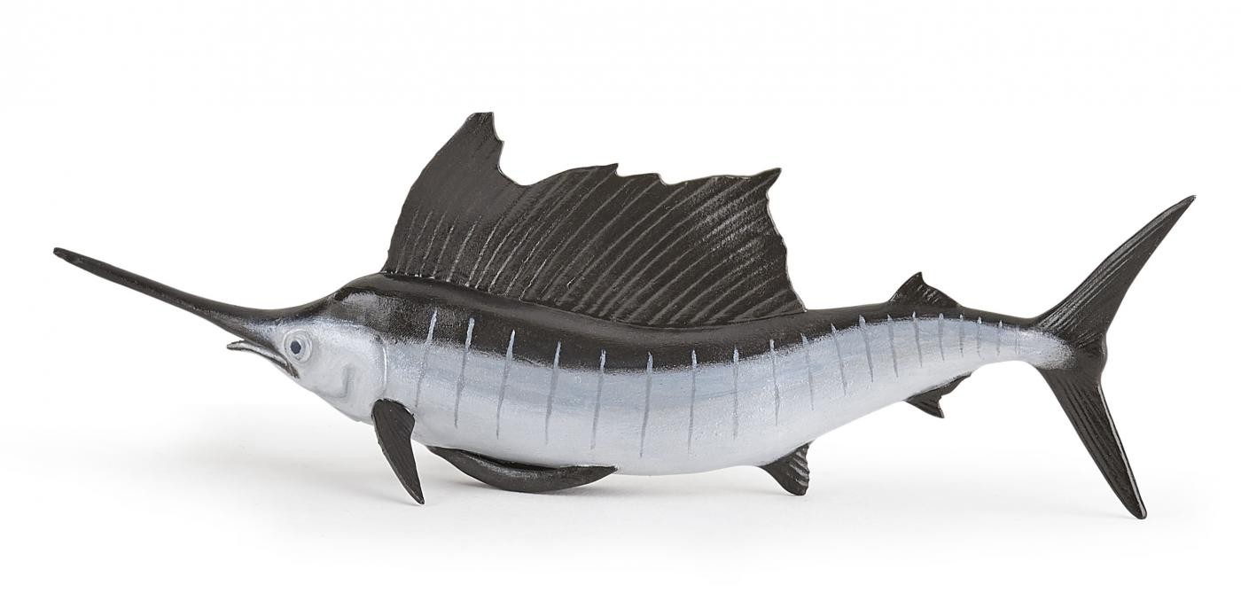 Scufundati-va cu balenele cu cocoasa, sariti in valuri alaturi de delfini sau deveniti un om-broasca capabil sa exploreze adancurile oceanului in cautarea unor exemplare magnifice precum pestele clovn. Pestele-spada este un peste mare, de culoare albastru, gri sau alb, care isi datoreaza numele inotatoarei in forma de val care ii impodobeste spatele. Datorita acestuia din urma poate imparti valurile cu aproape 110 km/h, facandu-l cel mai rapid peste din lume. Se gaseste in apele tropicale si temperate ale Oceanului Indian si Oceanului Pacific. Produsul are urmatoarele dimensiuni: 13 x 2.5 x 4.7cm si este recomandat copiilor cu varsta peste 3 ani. De mai bine de 20 de ani, Papo inoveaza constant si ii face pe copii din intreaga lume sa viseze cu o gama bogata de peste 600 de produse, reprezentand 12 lumi, animale si personaje. De la modelul original la serie, fiecare dintre figurinele Papo a fost conceputa si creata in Franta pentru a fi fabricata intr-o permanenta preocupare pentru calitate. Pictate manual, atentia la detalii este acum recunoscuta. Figurinele Papo se disting prin acuratete si realism, detaliile sunt de asa natura incat am putea crede ca se vor pune in miscare.