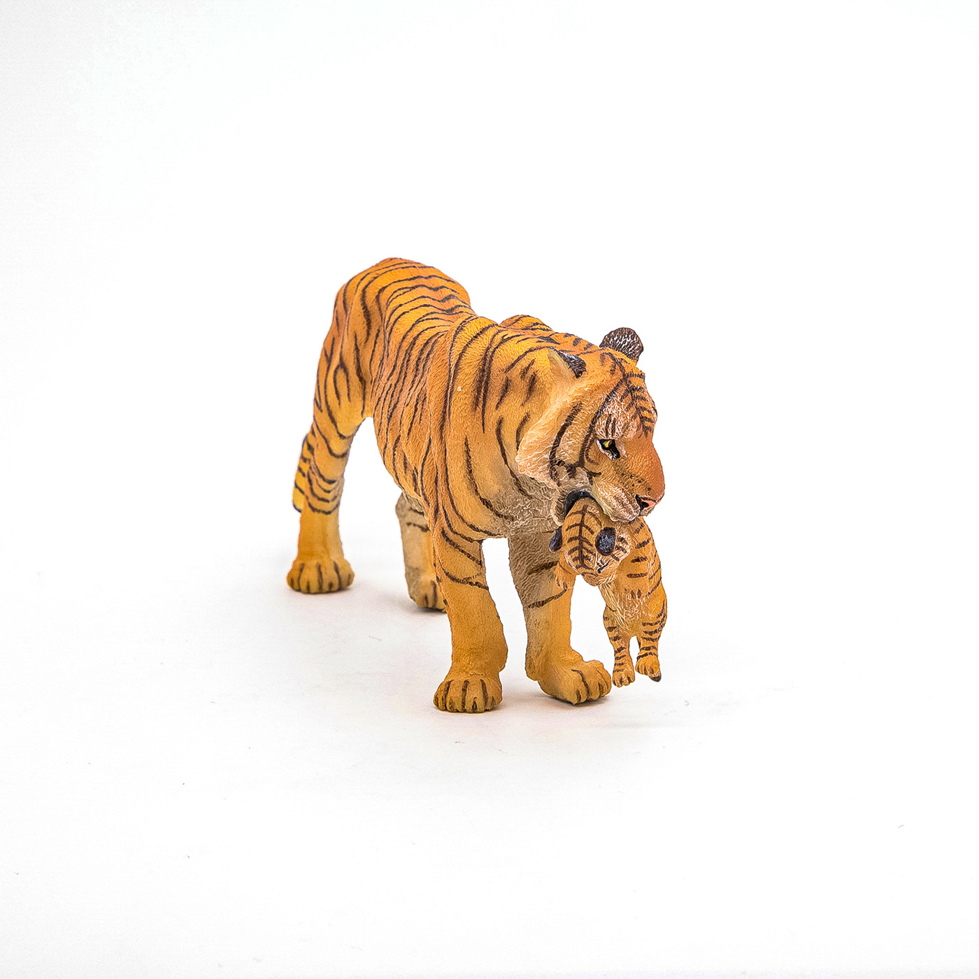 Vizitati cerbul cu coada alba maiestuoasa in inima padurilor, explorati savana alaturi de puternicul tigru de Sumatra sau urcati pe varfuri acoperite de zapada pentru a cauta leopardul de zapada. Mama Tigru tinde sa evite pericolul si isi muta frecvent puii purtandu-i in gura. Tigrii au adesea mai multe barloguri si se muta de la unul la altul dupa cum este necesar. Pentru a da nastere, femela tigru se izoleaza de pradatori. Puii se nasc orbi si cantaresc aproape un kilogram. Sunt foarte vulnerabili, dar pot conta pe protectia mamei lor, care ulterior ii va invata cum sa vaneze. Produsul are urmatoarele dimensiuni: 3.5 x 14.5 x 6.5cm si este recomandat copiilor cu varsta peste 3 ani. De mai bine de 20 de ani, Papo inoveaza constant si ii face pe copii din intreaga lume sa viseze cu o gama bogata de peste 600 de produse, reprezentand 12 lumi, animale si personaje. De la modelul original la serie, fiecare dintre figurinele Papo a fost conceputa si creata in Franta pentru a fi fabricata intr-o permanenta preocupare pentru calitate. Pictate manual, atentia la detalii este acum recunoscuta. Figurinele Papo se disting prin acuratete si realism, detaliile sunt de asa natura incat am putea crede ca se vor pune in miscare.