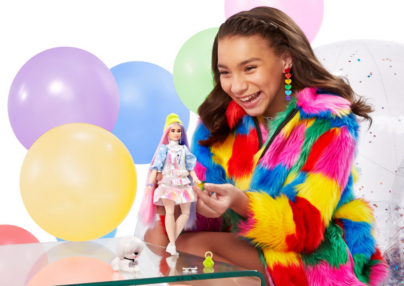 Papusile Barbie Extra etaleaza tinute indraznete, culori vii si iau atitudine! Fiecare papusa Barbie are propriul stil jucaus si exagerat. Animalele lor de companie sunt diferite, adorabile si au si ele o personalitate puternica! Barbie Extra permite copiilor sa exploreze exprimarea de sine prin stil si ofera o experienta de moda si stilizare captivanta, cu papusi ce prezinta articulatii. Barbie Extra reprezinta distractie la moda cu sclipici, ursuleti gumati, emoji si par distinctiv, aducand un vibe EXTRA oriunde merg. Fiecare se vinde separat, in limita stocului disponibil. Papusile nu isi pot mentine pozitia fara sprijin. Acest set contine o papusa cu par in nuante de mov si roz si poarta pe cap o caciula la moda verde fosforescent iar ca animal de companie are un catel alb.