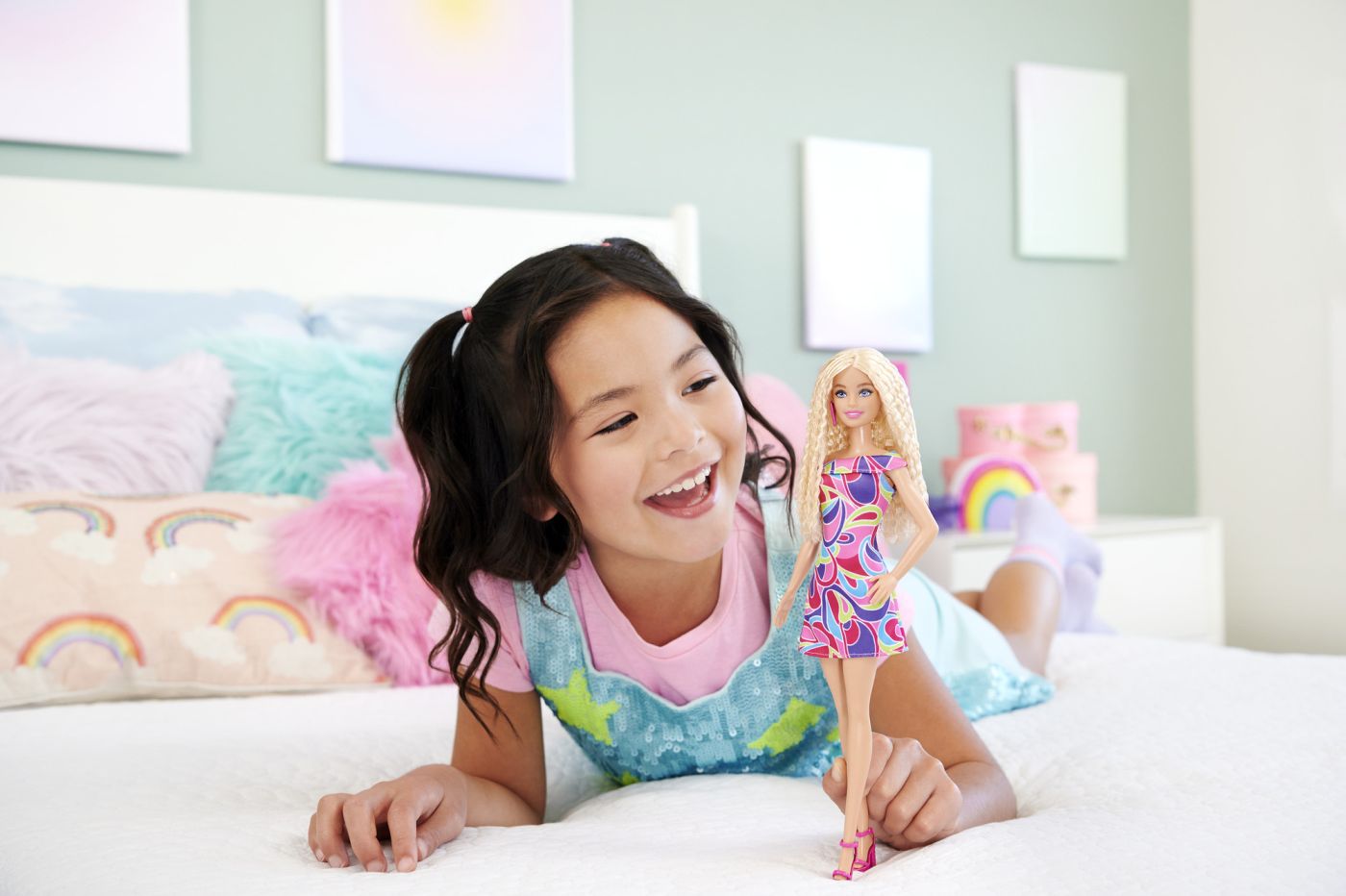 Inspirata de look-ul Totally Hair din 1992, papusa Barbie Fashionistas poarta o rochie colorata cu imprimeu deosebit! Pantofii Barbie cu toc roz si cerceii roz aprins cresc volumul acestei tinute! Papusa Barbie are parul lung blond ondulat pentru a celebra aspectul recunoscut! Cu posibilitati nesfarsite de styling si povestire, papusile Barbie sunt un cadou minunat pentru fani, colectionari si copii.