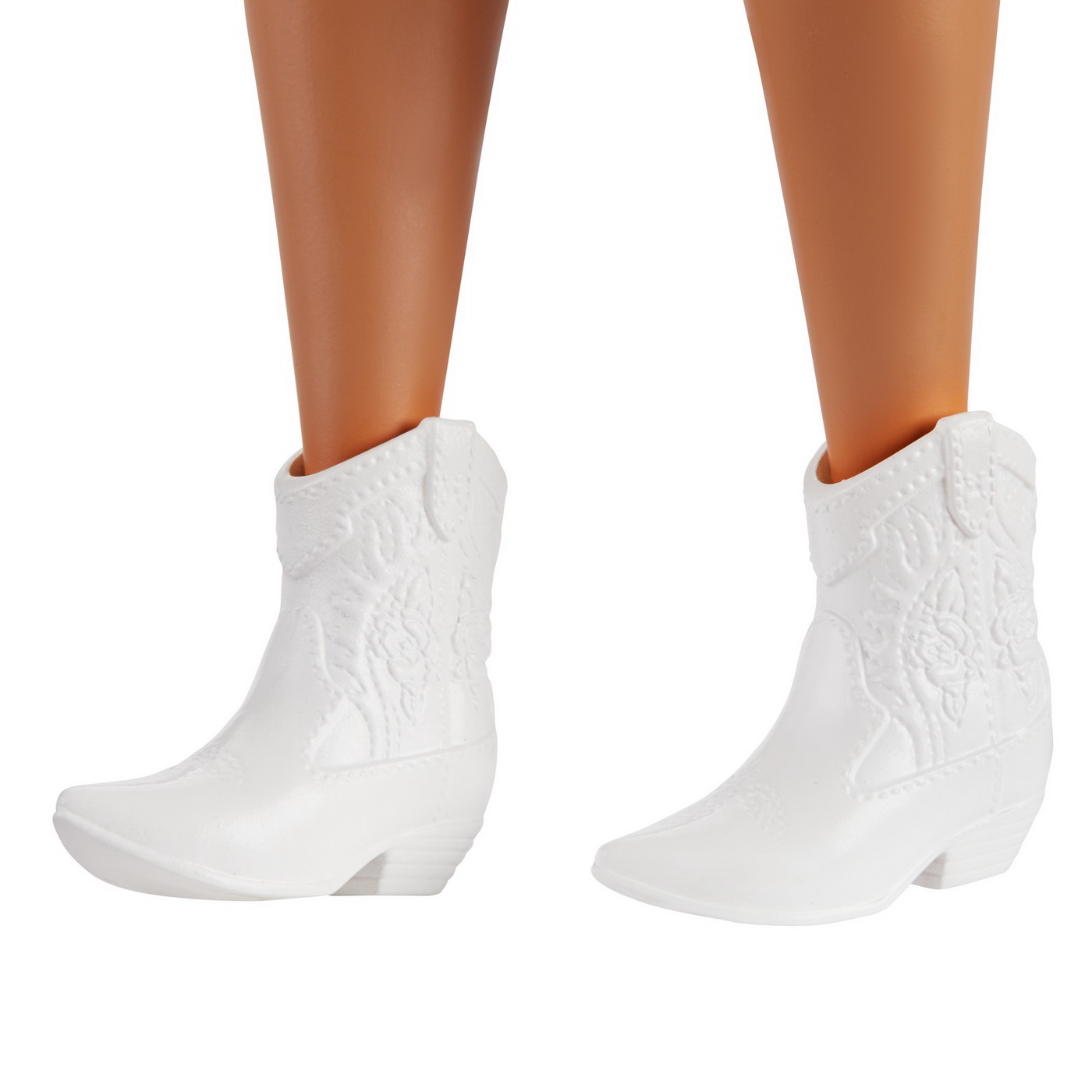 Fashionistas este una dintre celebrele colectii Barbie oferind o gama larga de papusi cu diferite stiluri si accesorii, introducand conceptul de diversitate si acceptare in randul fetelor. Papusa are propriul stil, inspirat de ultimele tendinte ale modei si vine impreuna cu tinute, incaltaminte si accesorii chic. Papusa Barbie este imbracata cu o rochita deosebita, rosie, cu modele cu stelute albe. Rochita Barbie un aer elegant. Papusa este parul mov si o inaltime de aproximativ 29 de centimetri.