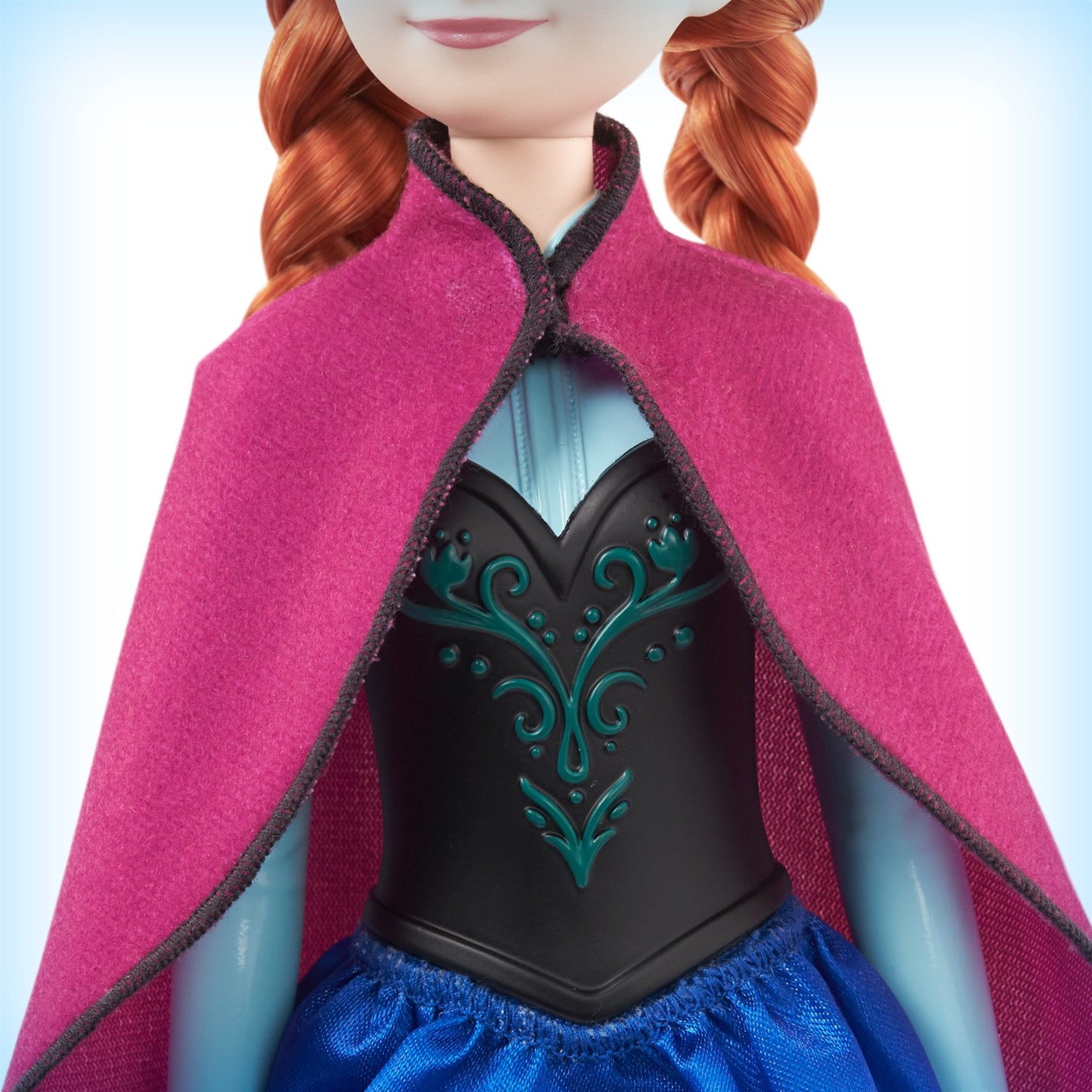 Faceti cunostinta cu aceste papusi de moda inspirate din indragitele filme Disney Frozen! Fiecare papusa articulata este prezentata in aspectul ei din film si are parul moale, care poate fi periat. Fanii le pot colecta pe toate si pot recrea aventuri magice in Arendelle si nu numai! Fiecare papusa se vinde separat, in functie de disponibilitate. Papusile nu pot sta singure in picioare sau sezut. Culorile si decoratiunile pot varia. Acest pachet contine o papusa Anna cu codite.