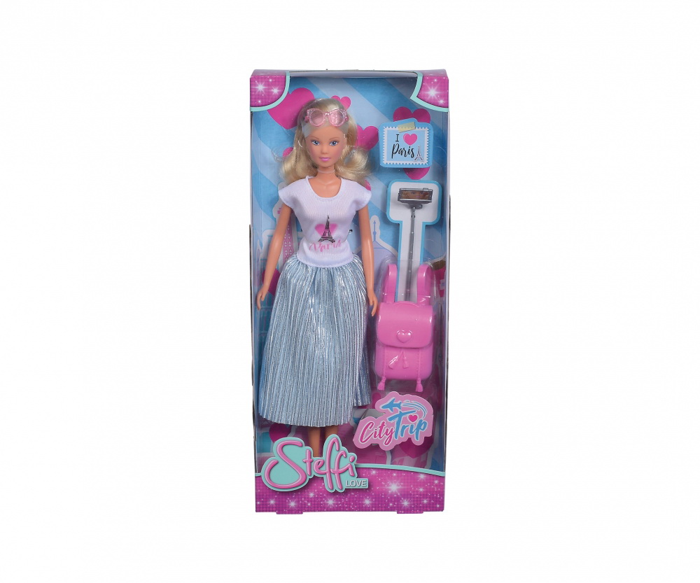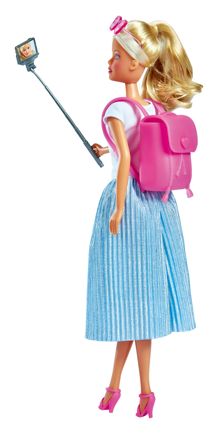 Într-o tinuta la moda - Steffi se afla intr-un tur turistic si poarta o fusta plisata la moda cu un tricou. Ea poate incepe cu un stil perfect. Echipata cu un rucsac, ochelari de soare si stick pentru selfie, Steffi se plimba prin oras si isi ia cele mai bune selfie-uri ca suvenir.