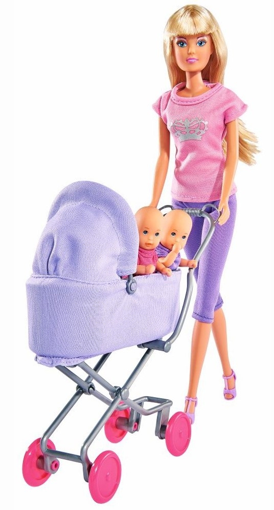 Steffi a iesit la plimbare cu cei doi copilasi. Fiind si o mama responsabila, ea are grija de ei cu ajutorul accesoriilor incluse. Setul contine: 2 bebelusi de 5 cm, accesorii pentru joaca si hranirea bebelusilor, 1 carucior, 1 papusa Steffi