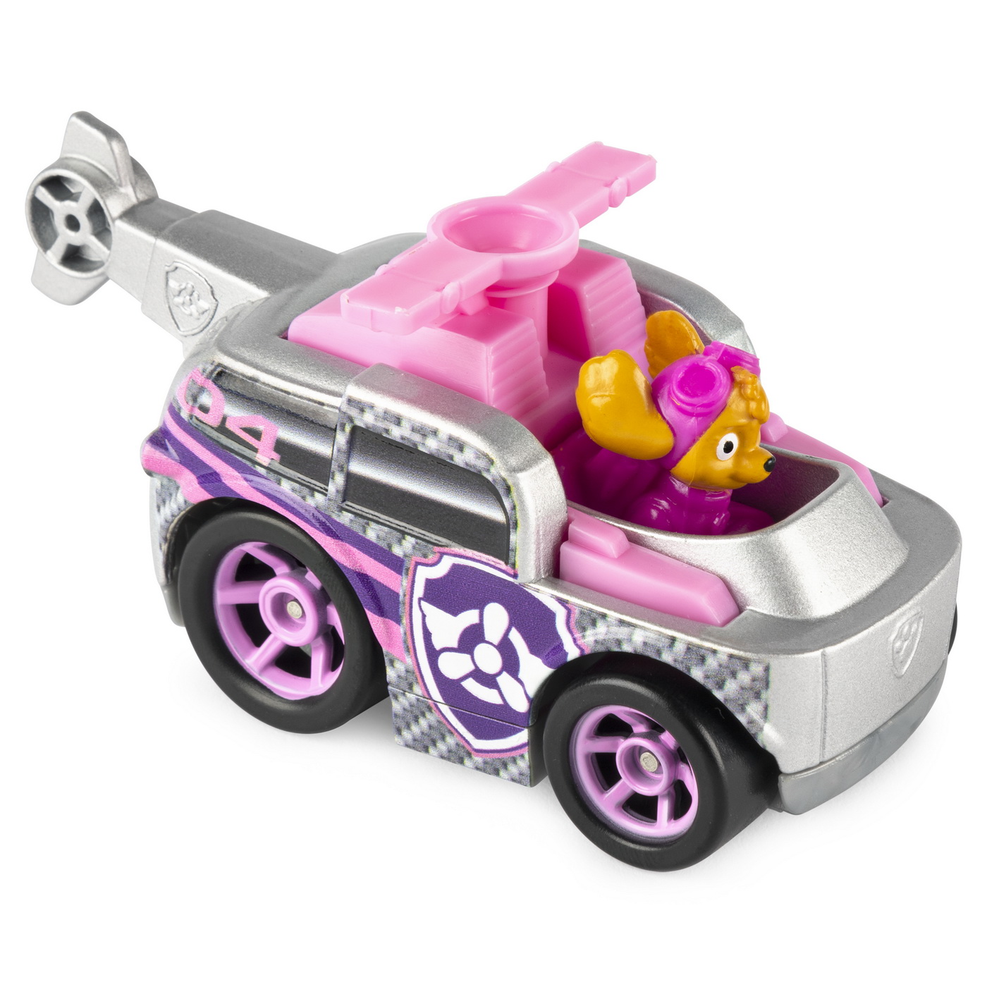Misiunile de salvare se desfasoara acum mai repede ca niciodata cu vehiculele PAW Patrol True Metal! Aceste vehicule metalice la 1 la 55 arata la fel ca vehiculele Patrulei Catelusilor din serialul TV de succes. Cu detalii si grafica autentice, roti de lucru si material metalic turnat sub presiune, vehiculele True Metal sunt gata pentru salvarea rapida! Impingeti vehiculul cu mana sau lansati-l inainte pentru aventuri de mare viteza! Vehiculele True Metal ale Patrulei Catelusilor sunt un cadou minunat pentru toti copiii de peste 3 ani. Aduna-le pe toate si pregateste-te pentru emotii mari si provocari noi. Rotile masinutei sunt functionale, caroseria este din metal. Lungime masinuta 8 cm. In acest pachet este inclusa masinuta lui Skye, eroina feminina a serialului.