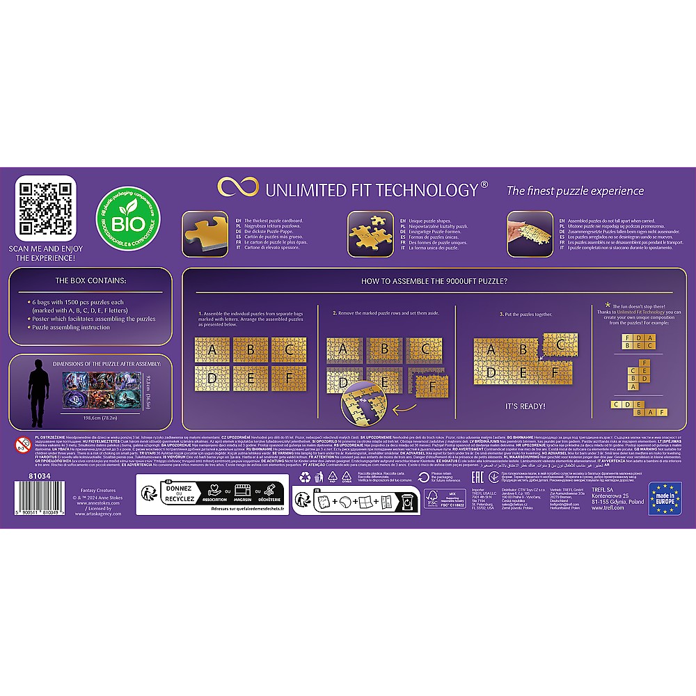 Descoperiti puzzle-urile Trefl Prime UFT constand din 9000 de piese impresionante! Puteti combina 6 puzzle-uri (1500 de piese fiecare) intr-o imagine gigantica propusa pe poster sau lasati-va imaginatia sa zboare si creati-va propria compozitie! Puzzle-urile sunt un antrenament excelent al memoriei, dezvoltarea abilitatilor manuale, concentrare, rabdare si perceptivitate. Un cadou unic pentru pasionatii de puzzle-uri, adulti si copii cu varsta peste 12 ani. Dimensiunea totala a puzzle-ului combinata in modul in care va sugeram este de 1985.6 x 928 mm. Puzzle-urile individuale pot fi, de asemenea, combinate in orice mod datorita tehnologiei UFT. Modul individual de conectare defineste o dimensiune diferita a intregii compozitii.