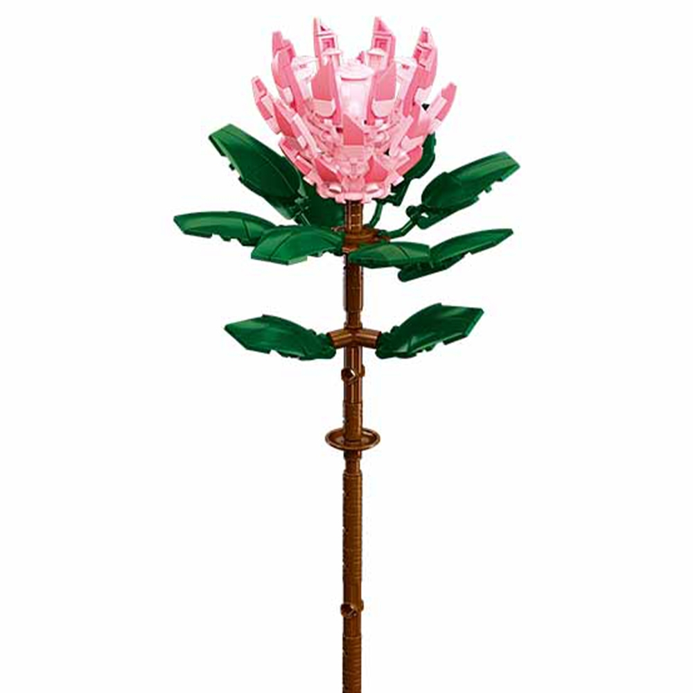 Cu acest set de construcție Sluban poți crea o floare spectaculoasă Protea cynaroides, elegantă și mereu proaspătă. Asamblezi atât floarea, cât și vaza, obținând un obiect decorativ original. Este o activitate relaxantă, ideală pentru pasionații de construcții creative.