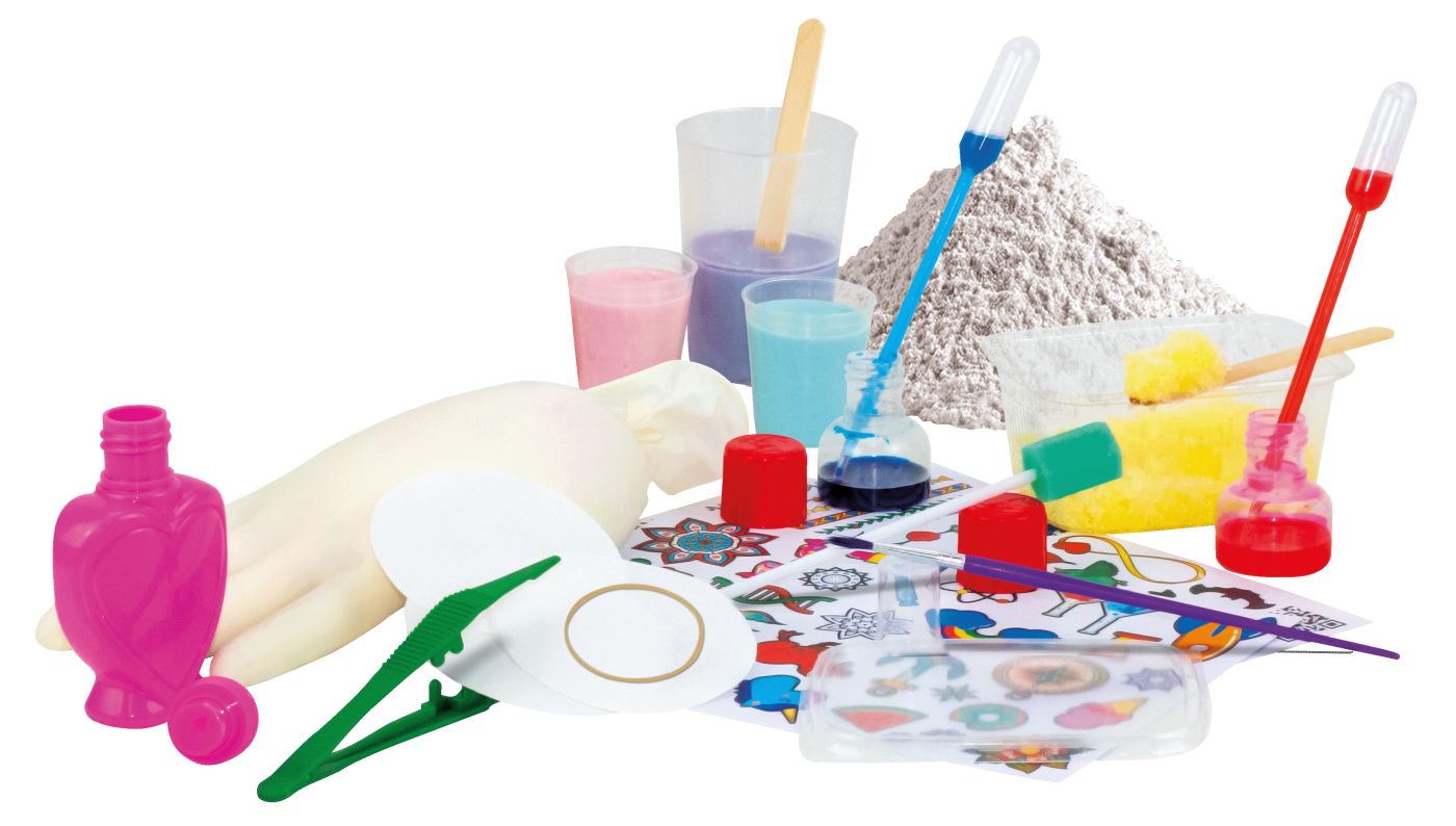 Creeaza-ti propriile tatuaje cu aceasta Fabrica de tatuaje! Nu rata sansa de a-ti pregati propriile cerneluri si de a descoperi originea si stiinta din spatele tatuajelor temporare. Vei gasi, de asemenea, peste 60 de tatuaje gata de aplicat pentru tine sau prietenii tai! Continutul setului: banda elastica, manusa, filtre de hartie, cupe mici gradate, pipete Pasteur, cupa mare gradata, spatule din lemn, pensula, colorant cosmetic albastru, colorant cosmetic roz, ghips, recipient cu capac, sticluta in forma de inima, penseta, burete, tatuaje prin transfer.