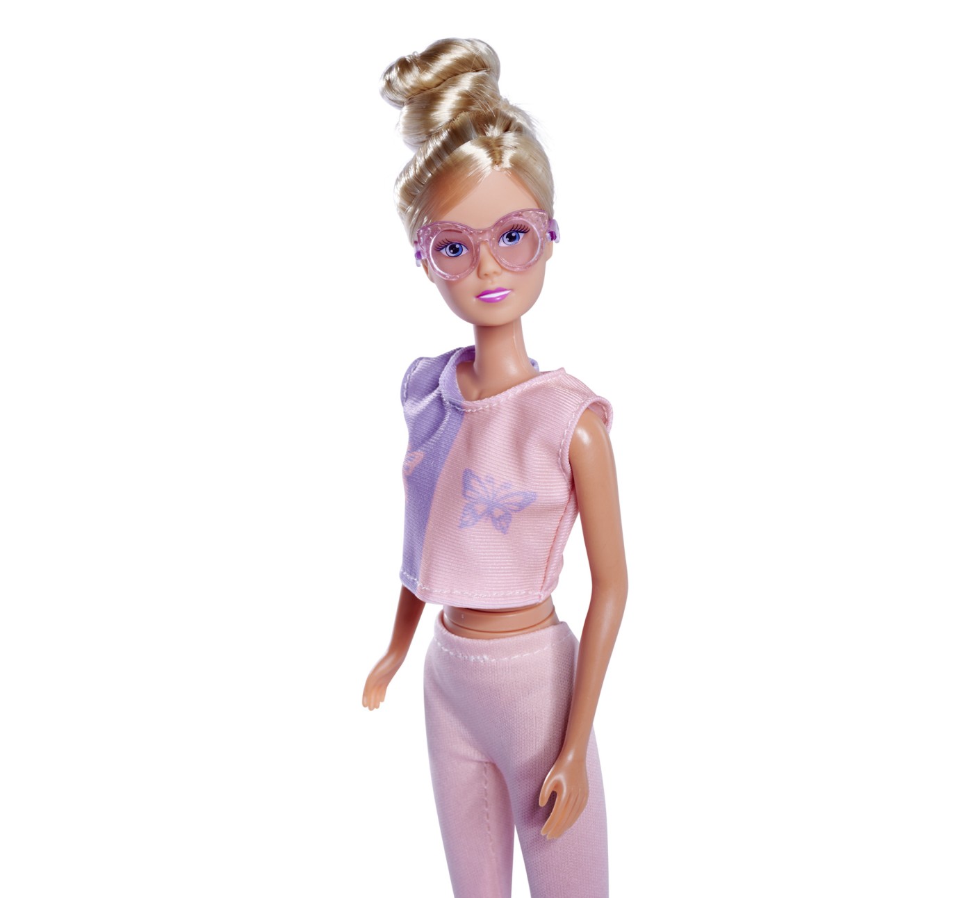 Steffi LOVE este o adevarata papusa de moda. Îi plac hainele sic si coafurile la moda. Steffi este o adevarata regina Hula Hoop. Hula hoop este usor de atasat de sold. Daca o muti pe Steffi cu mainile, aceasta incepe sa se roteasca si Steffi isi arata abilitatile. Steffi are 29 cm inaltime si poarta o tinuta sport formata din jambiere roz si un crop top cu motive fluturi. Un coc casual si ochelari ii completeaza tinuta.