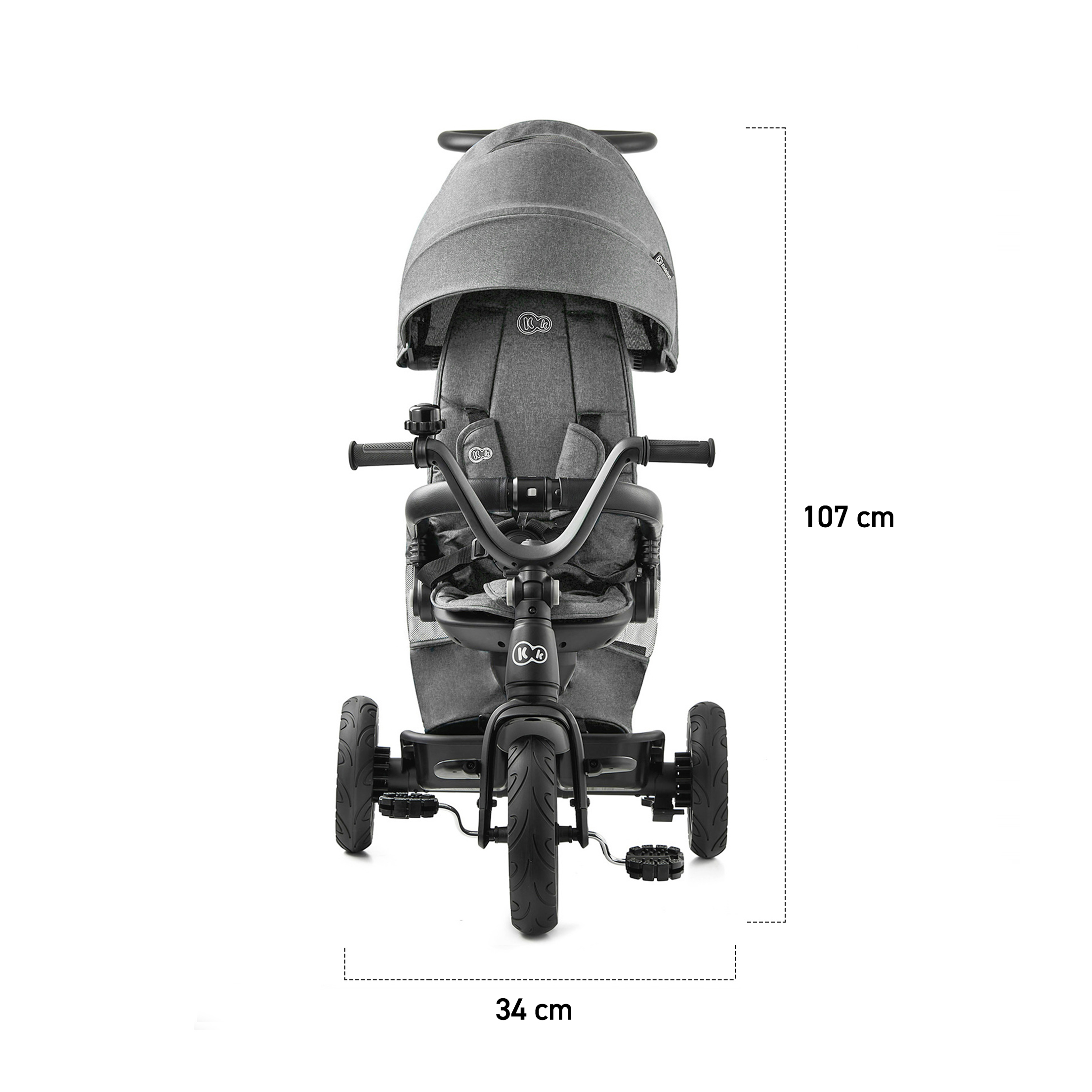 Tricicleta Kinderkraft EASYTWIST, PLATINUM GREY Plimbarea este pentru un copil o ocazie excelenta de a descoperi lumea din jur. EASYTWIST PLATINUM GREY este o tricicleta de care se va indragosti fiecare copil ! În timp ce ii asigura copilului o buna distractie, il ajuta sa-si dezvolte abilitatile motorii – deja de la varsta de 9 luni! sezutul inovator, dotat cu sistemul pivotant CLICK & TWIST, permite o rotatie completa la 360°, iar bicicleta in sine este usoara si extrem de durabila - datorita unui cadru solid din aliaj de magneziu. Plimbarea cu aceasta tricicleta ajuta, de asemenea, la stapanirea echilibrului, sustine coordonarea motorie si invata un comportament corect si sigur in afara casei. EASYTWIST PLATINUM GREY este o tricicleta 5 in 1 - datorita constructiei sale modulare poate fi modificata si ajustata la varsta si inaltimea copilului. Avantaje Siguranta: Rotile tricicletei sunt fabricate din PU - sunt puternice si durabile - practic impenetrabile. Au o rezistenta crescuta la abraziune. Rotile din spate sunt, de asemenea, echipate cu rulmenti, si de aceea sunt perfecte pentru orice suprafata. Confortabil de utilizat, bara fixata protejeaza copilul impotriva caderii. Element protector al rotii din fata pentru a proteja picioarele copilului in timpul mersului. Centuri de siguranta in 5 puncte cu elemente protectoare moi (pentru centura dintre picioare). Blocaj care permite pedalarea fara propulsarea rotii. Îndeplineste standardul european EN-71. Franele (cate una pe fiecare roata) impiedica deplasarea accidentala a tricicletei. Confort: Copertina rabatabila care protejeaza copilul de soare si vant (impermeabila, cu UPF 50+). Maner reglabil pentru parinte (de la 84 cm la 107 cm). Manerul poate fi setat pe 4 niveluri. Manevrarea usoara a tricicletei in timpul mersului cu ajutorul manerul dedicat pentru parinte. Manerele antiderapante din cauciuc asigura o prindere sigura pentru copil. Husa detasabila a scaunului poate fi spalata in masina de spalat rufe. Functionalitate: Scaun CLICK & TWIST rotativ la 360°. Tricicleta creste odata cu copilul - structura modulara face posibila modificarea produsului pentru a-l potrivi la varsta micului utilizator (5 optiuni de setare!). La tricicleta sunt atasate accesorii suplimentare, cum ar fi un cos pentru maruntisurile copilului, un sac-rucsac si un suport pentru o cana sau o sticla de apa. Usurinta cu care se poate face demontarea anumitor elemente, face ca EASY TWIST PLATINUM GREY sa fie foarte usor de transportat. Accesorii suplimentare Sac-rucsac Cos pentru maruntisuri Suport pentru cana Sonerie Fabricatie Materiale: Cadru: fabricat din aliaj ultra-usor si durabil de magneziu Material: poliester nealergen, cu uscare rapida, rezistent la abraziuni si conditii meteorologice Roti: PU Dimensiuni: • inaltime (maner parinte): 107 cm • inaltime (bicicleta cu copertina): 130 cm • latime (roata din fata): 34 cm • inaltime (roata din fata): 25,4 cm • inaltime (roata din spate): 20,3 cm Greutate: 10 kg Dimensiuni ambalaj/ greutate: 73 x 43 x 28,5 cm/11,8 kg