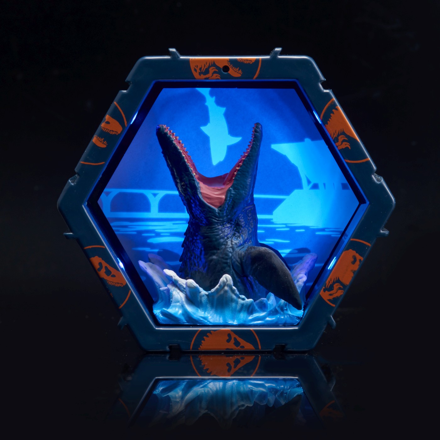 Fiecare personaj este situat in propriul POD in forma de hexagon cu lumini UV si senzor IR incorporat. Pur si simplu miscati mana peste senzor pentru a lumina WOW-ul! POD-ul! Misca-ti mana in fata POD-ului pentru a-l lumina si a dezvalui pictograme ascunse in spatele WOW!Pod-ului! Lumina se stinge automat dupa 30 de secunde. Conectati-le in cateva secunde! Colectia ta poate lua diferite forme si avea in fiecare zi, alt look! Limita e doar de imaginatia ta! Puteti chiar sa va scrieti numele sau initialele pentru a crea un afisaj care este fara indoiala si unic al dvs.! Colectionati si conectati personajele favorite printr-o colectie mai vasta de eroi WOW! PODS! Sunt disponibile personaje : Marvel, DC, Disney, Disney Frozen, Sonic, Jurassic World, Harry Potter, Minionii si altele. Acest pachet contine personajul Mosasaurus.