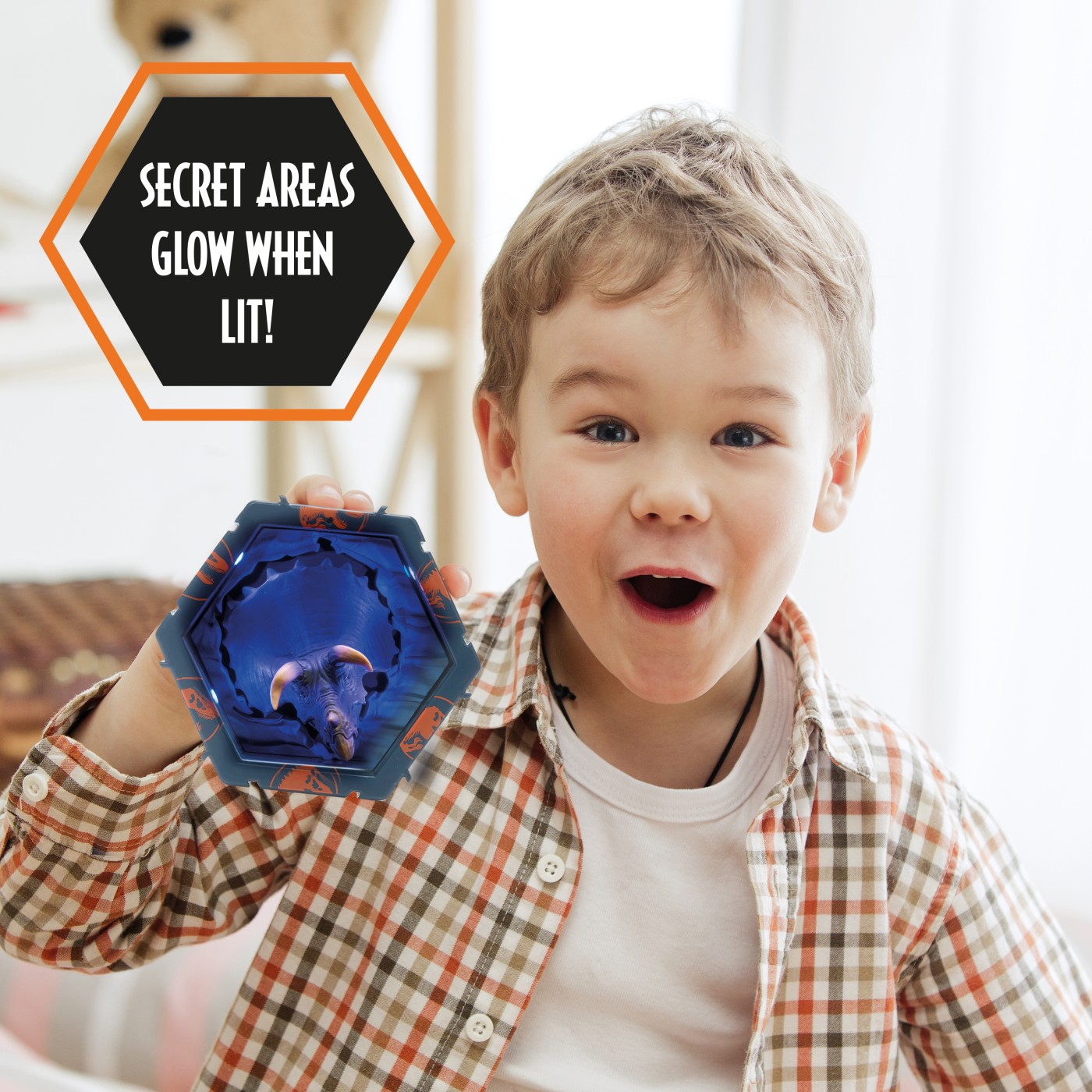 Fiecare personaj este situat in propriul POD in forma de hexagon cu lumini UV si senzor IR incorporat. Pur si simplu miscati mana peste senzor pentru a lumina WOW-ul! POD-ul! Misca-ti mana in fata POD-ului pentru a-l lumina si a dezvalui pictograme ascunse in spatele WOW!Pod-ului! Lumina se stinge automat dupa 30 de secunde. Conectati-le in cateva secunde! Colectia ta poate lua diferite forme si avea in fiecare zi, alt look! Limita e doar de imaginatia ta! Puteti chiar sa va scrieti numele sau initialele pentru a crea un afisaj care este fara indoiala si unic al dvs.! Colectionati si conectati personajele favorite printr-o colectie mai vasta de eroi WOW! PODS! Sunt disponibile personaje : Marvel, DC, Disney, Disney Frozen, Sonic, Jurassic World, Harry Potter, Minionii si altele. Acest pachet contine personajul Triceratrops.