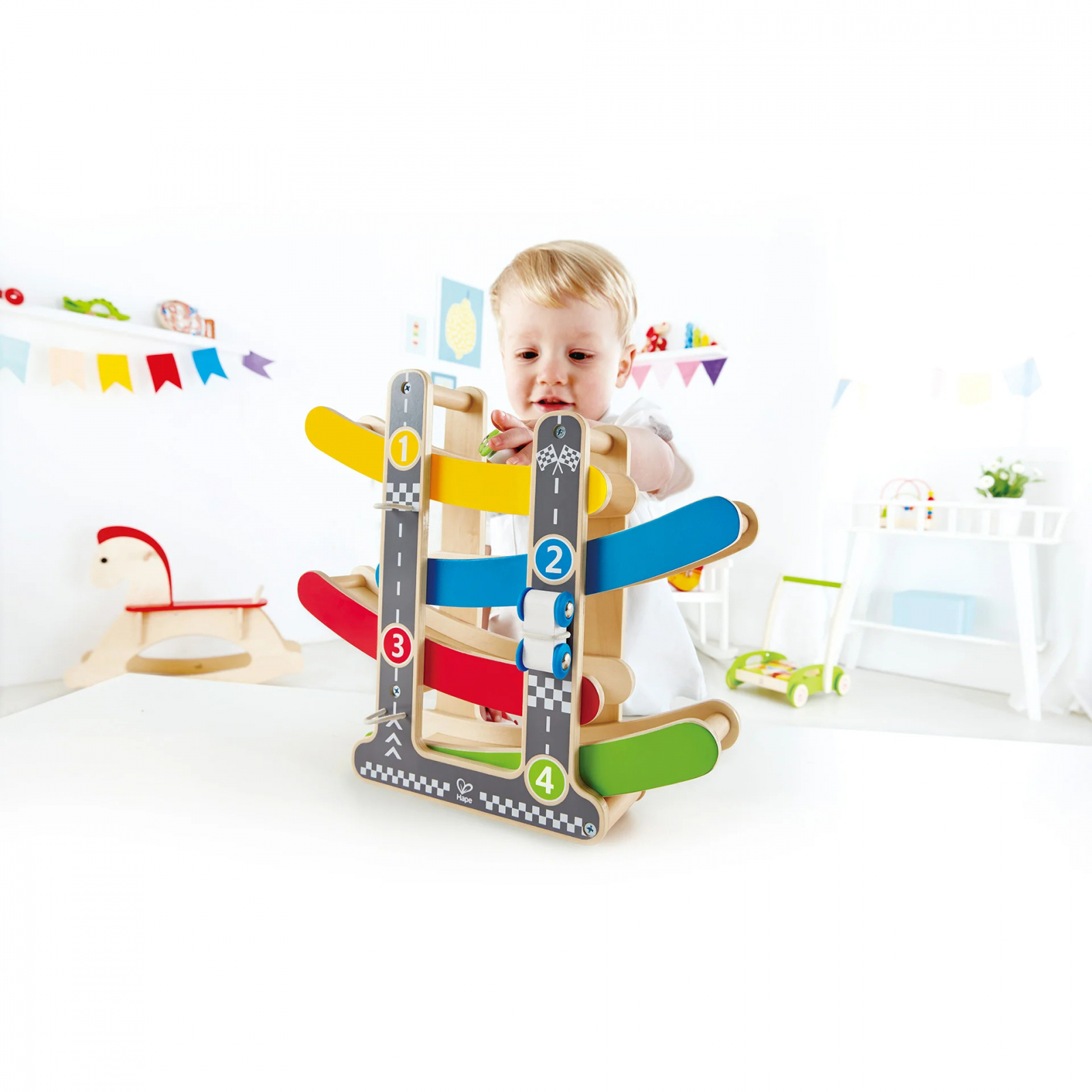 Descoperă traseul de curse din lemn Hape, o jucărie captivantă pentru cei mici, care aduce bucuria competițiilor la ei acasă.