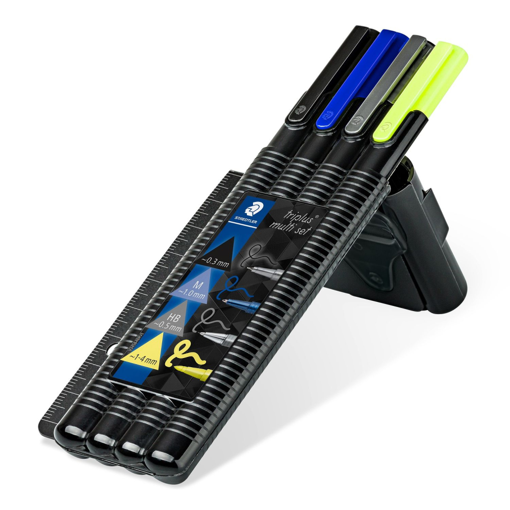 Set 4 instrumente de scris Triplus cu rigla atasata Staedtler