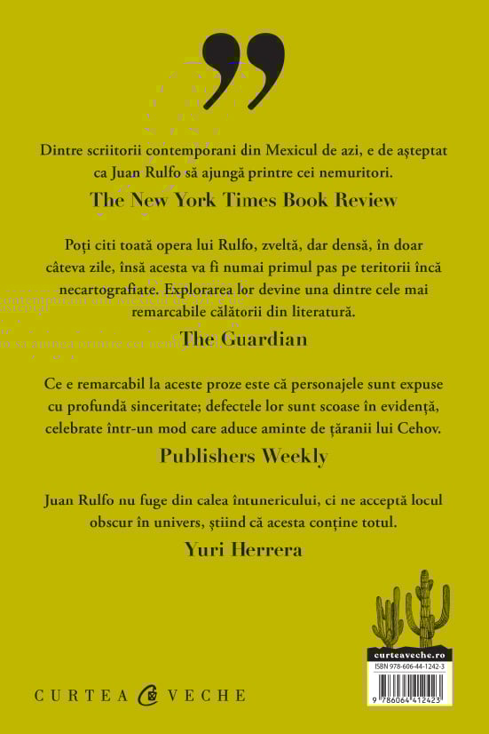 „Câmpul în flăcări” este un volum de proză al lui Juan Rulfo, apreciat pentru stilul său laconic și profunzimea literară. Cu o influență puternică din partea marilor tragici ai literaturii clasice, această operă este un portret al Mexicului rural, cu ecouri biblice și o tematică universală despre suferință, destin și viața umană.