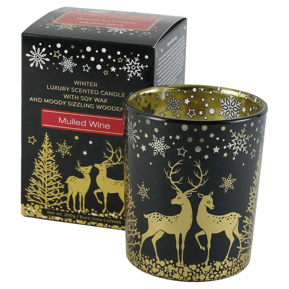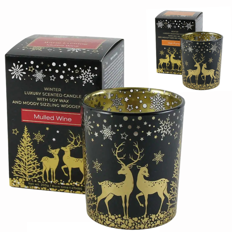 Aceasta lumanare parfumata de Craciun, denumita Warm Evening, vine prezentata intr-un pahar elegant de sticla si are o cantitate de 200 g. Parfumul sau este special creat pentru a aduce caldura si confort in locuinta dumneavoastra pe durata sarbatorilor de iarna. Produsul are dimensiunile de 9 x 9 x 12 cm, fiind un accesoriu decorativ ideal pentru orice masa festiva.