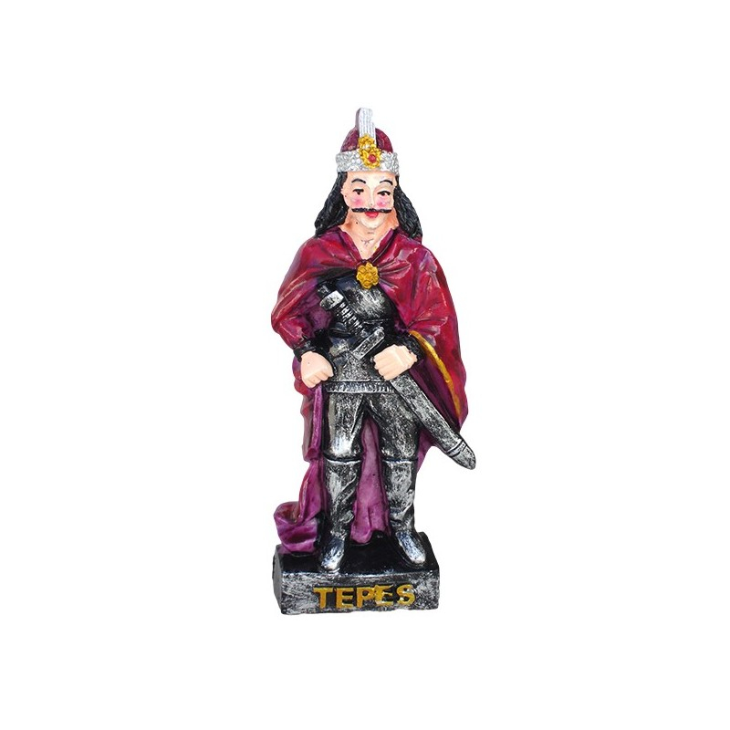 Acest magnet este confecționat din rășină și îl prezintă pe Țepeș într-o reprezentare decorativă, realizată în relief. Modelul este unul singur, așa cum apare în imagine, fiind conceput ca obiect decorativ sau suvenir. Magnetul poate fi așezat pe frigider sau pe alte suprafețe metalice, integrându-se ușor într-o colecție de magneți. Dimensiunile produsului sunt de 4x10 cm.