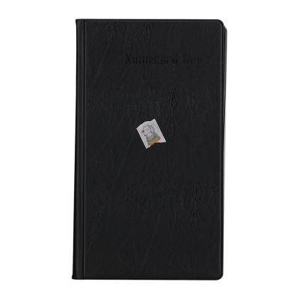 Mapa pentru 180 carti de vizita. Sunt dispuse 3 buzunare pe fiecare fila. Dimensiuni: 188 × 110 × 15 mm.