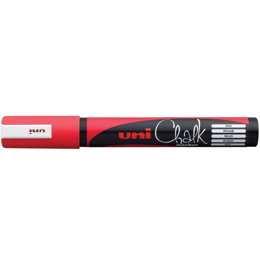 Markerul cu cretă lichidă Uni Chalk Posca roșu este conceput pentru utilizare versatilă, atât profesională, cât și personală. Poate fi folosit pe tablă neagră, tablă verde, whiteboard, sticlă și pe alte suprafețe lucioase, inclusiv plastic și metal, oferind o scriere uniformă și bine definită.