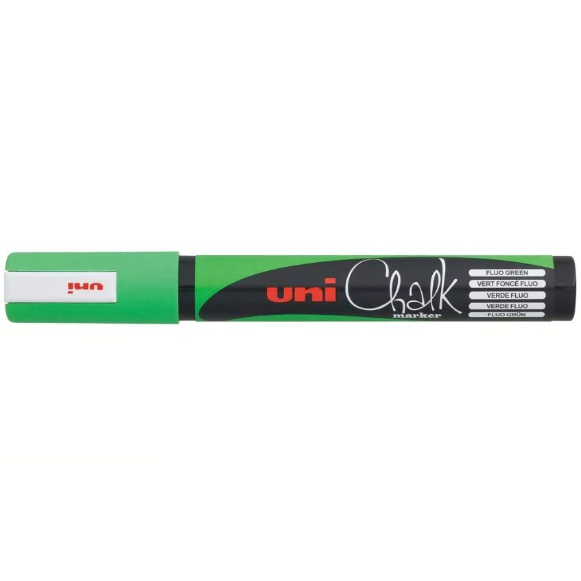 Markerul cu cretă lichidă Uni Chalk Posca verde fluorescent este conceput pentru scriere vizibilă și precisă pe o varietate de suprafețe. Poate fi utilizat pe tablă neagră, tablă verde, whiteboard, sticlă și alte suprafețe lucioase, inclusiv plastic și metal, oferind o culoare intensă și opacă.