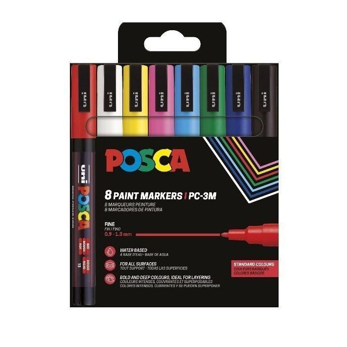 Descoperă setul de 16 markere UNI Posca PC-3M, perfect pentru artiști, ilustratori și pasionați de artă care doresc un instrument versatil și o paletă largă de culori pentru diverse tehnici și proiecte creative
