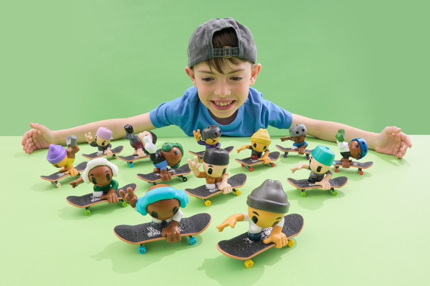 Învata cum sa faci skating cu degetul cu noul set de 2 piese Tech Deck Echipa Sk8 . Fiecare pachet vine cu doua placi Tech Deck, doi membri Echipa Sk8 si doua foi de autocolante pentru a incepe. Cu opt figurine Echipa Sk8 de colectionat, imbunatateste-ti aderenta pentru a stapani miscari precum ollies si power slides. Fixeaza membrul echipei de skateboard pe placa de skateboard si incepe sa exersezi tehnicile corecte. Scaneaza codul QR pentru tutoriale video pentru a studia miscarile preferate. Ia-ti Echipa Sk8 intr-o aventura cu Autobuzul Ultra Sk8 pentru trucuri mai mari si depozitare pentru Echipa Sk8 (vandut separat). Plimba-te cu noile tale skateboard-uri cu degetul pe seria X-Connect. Construieste seturile de rampe Quarter Bowl Ruckus sau Pyramid Shredder 2.0 (fiecare se vinde separat) pentru a-ti distruge placile de skateboarding pe obstacolele preferate de pe placile pentru deget, cum ar fi Tech Deck Skatepark. Exista o multime de punti, figuri de jucarie si seturi de joaca de colectionat! Da-te cu placa, fa intoarceri si grind-uri cu placile de deget Tech Deck si BMX de la companii reale de skating! Mini skateboard-urile Tech Deck pentru degete si seturile de rampa reprezinta cadoul perfect de jucarii pentru fetele de 6-8 ani care iubesc jucariile mici, jucariile cool si jucariile actuale. Daca sunteti in cautarea unor jucarii pentru baieti de 3 ani, luati in considerare Tech Decks ca o alternativa la masinile de jucarie ca si jucarii pentru baieti cu varsta de 6-8 ani. Începeti de la mic, mergeti la mare si explorati lumea de skating cu degetul cu Tech Deck Echipa Sk8 Pachet de 2.
