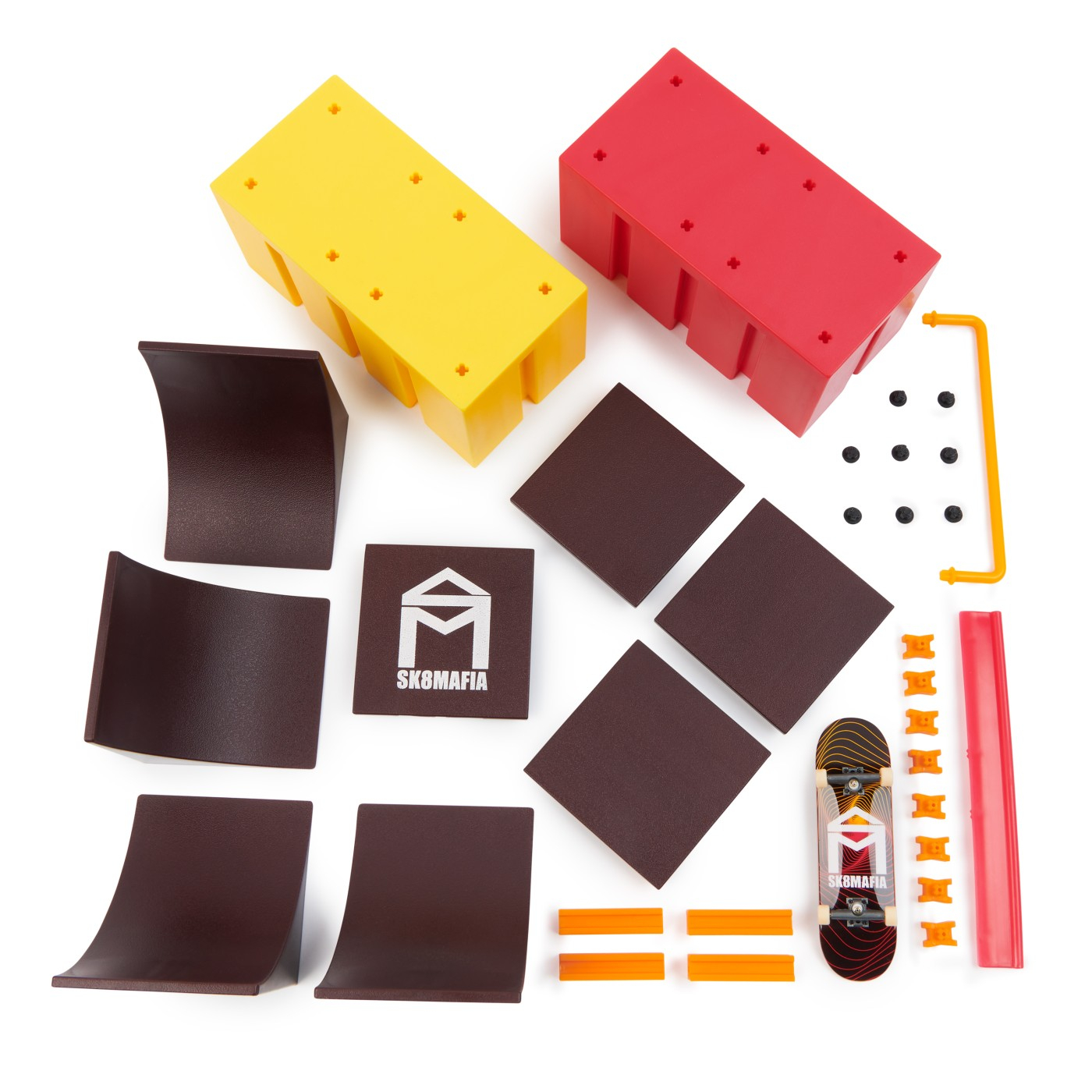Proiecteaza si construieste-ti un mini-parc de skateboard personalizat cu setul de rampe de skateboard Tech Deck Vert Wall 2.0 X-Connect Park Creator. Configureaza diferite combinatii cu rampele vert, rampa wedge si subrail-ul pentru a invata si a-ti imbunatati trick-urile. Adauga-l la colectia ta de skateboard-uri pentru degete si da-te cu noul tau fingerboard exclusiv Sk8Mafia Skateboards inclus in set. Are grafica de skate autentica de la companii de skate reale. Fa curbe largi la roll-in, accelereaza sau incetineste cu diferitele rampe, configureaza si personalizeaza Vert Wall oricum doresti. Se utilizeaza alaturi de colectiile Tech Deck sau BMX (fiecare vanduta separat). Combina alte playset-uri X-Connect pentru a obtine cel mai tare skatepark Tech Deck. Da-te exact ca skaterii profesionisti cu fingerboard-ul exclusiv care are banda de prindere, bucse si multe altele.