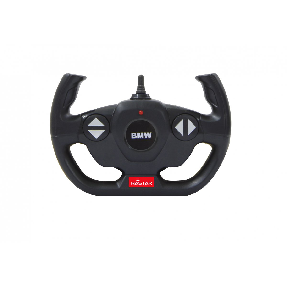 Copilul dumneavoastra se poate juca in voie cu masina cu telecomanda BMW M3, scara 1 la 14, oferita de brandul international Rastar. Nicio cursa nu este imposibil de castigat cu acesta masinuta, replica oficiala cu licenta a modelului original, construita cu mare atentie la detalii. Masinuta are proportiile ideale pentru momente pline de distractie si amuzament, avand dimensiunile in centimetri dupa cum urmeaza : 32.3*14.8*13.9.Masinuta functioneaza pe frecventa de 2.4G.Alimentarea se face astfel : pentru masinuta sunt necesare 5 baterii tip AA , iar pentru telecomanda 2 tip AA.Masinuta se poate deplasa in toate directiile : inainte, inapoi, stanga sau dreapta. Masina cu telecomanda BMW M3, scara 1 la 14, poate rula cu o viteza aproximativa de 10km/h, are tractiune 2WD, anvelope de cauciuc, posibilitate de reglaj a directiei direct pe sasiu si o raza de actiune a telecomenzii de circa 20 de metri.Acesta masinuta are si o functie suplimentara care face ca farurile si stopurile masinutei sa lumineze.