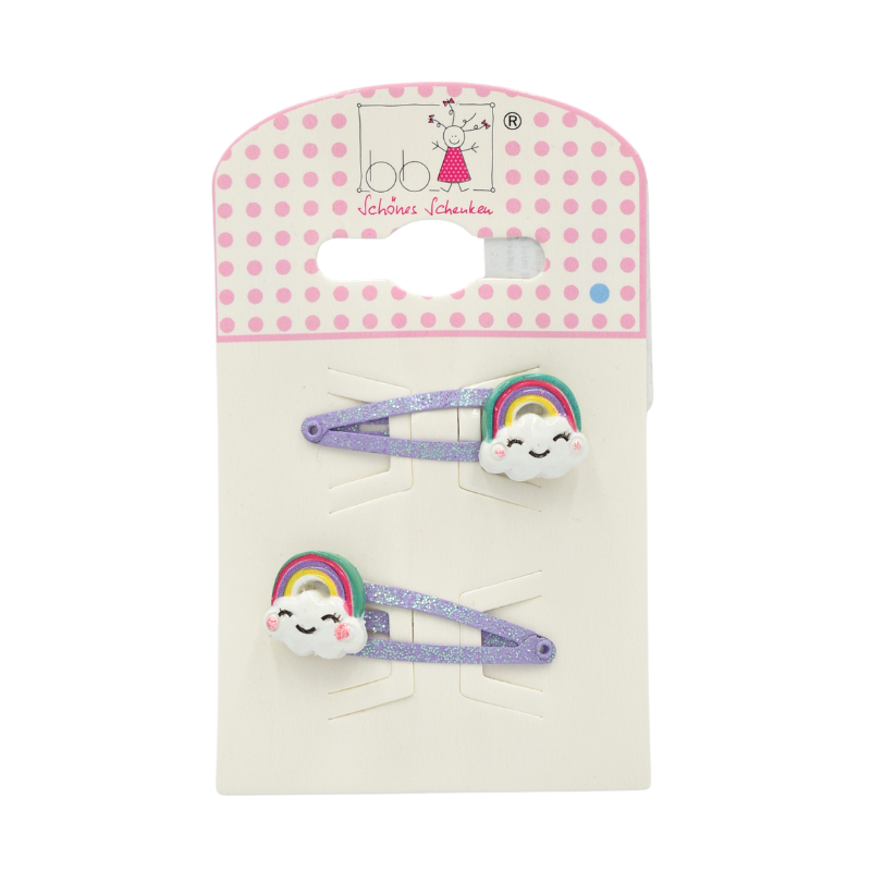 Agrafele de păr bb Klostermann cu design nor și curcubeu sunt alegerea ideală pentru a aduce culoare și veselie în fiecare zi. Realizate în nuanțe atractive de roz și mov, aceste accesorii se remarcă prin detaliile sclipitoare și expresiile simpatice ale norului, care aduc instantaneu zâmbete.