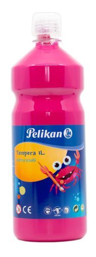 Acuarele Tempera, Pelikan, in flacon de 1 litru cu dop special pentru dozare precisa, vopsea pe baza de coloranti naturali, formula ecologica si non-toxica, culoare roz deschis.